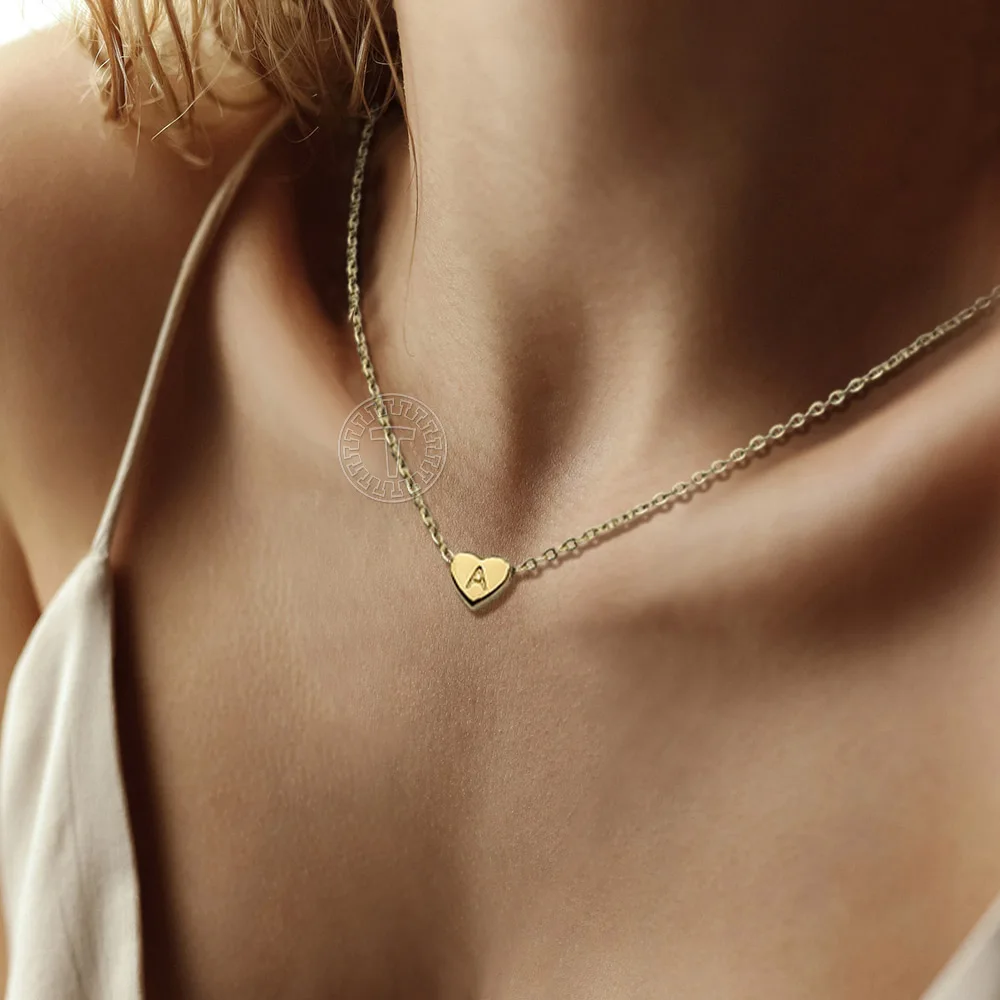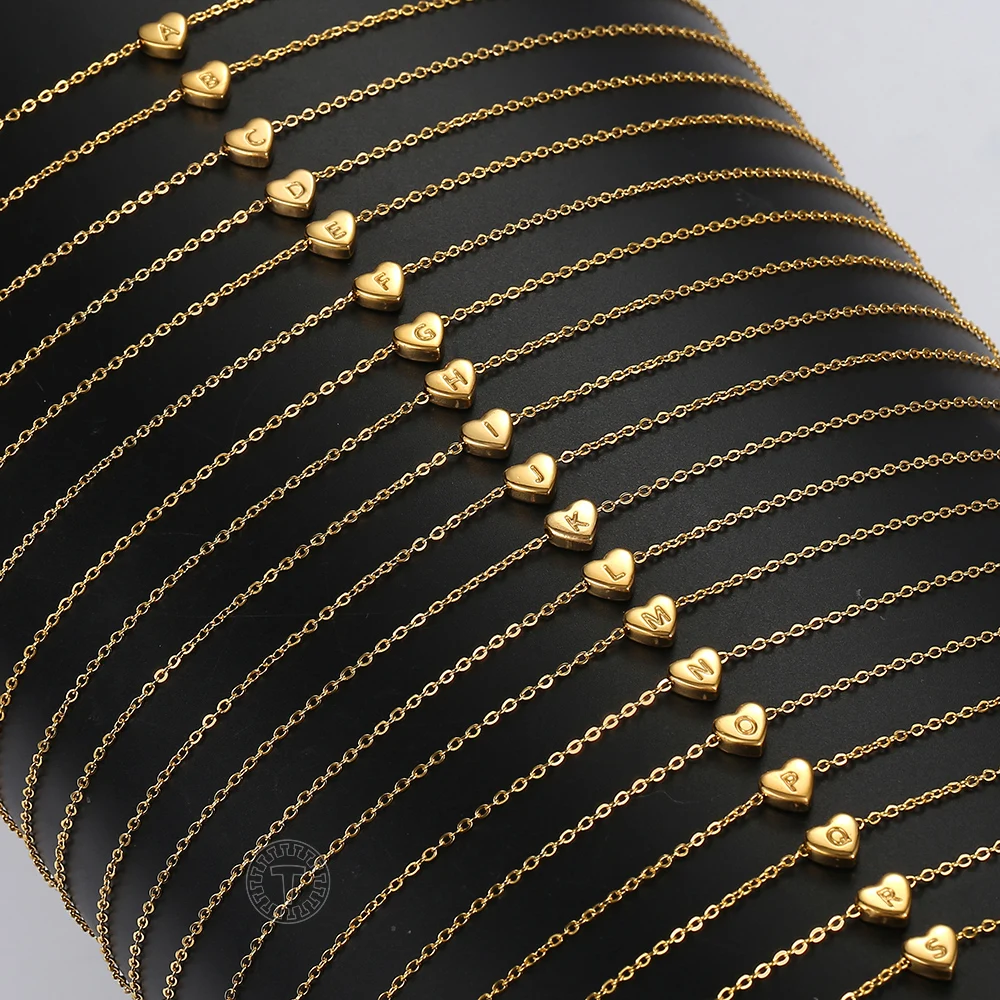 Маленькое золотое ожерелье-чокер с надписью в форме сердца для женщин и маленьких девочек, A-Z из нержавеющей стали с алфавитом, лучший подарок на день рождения KN657