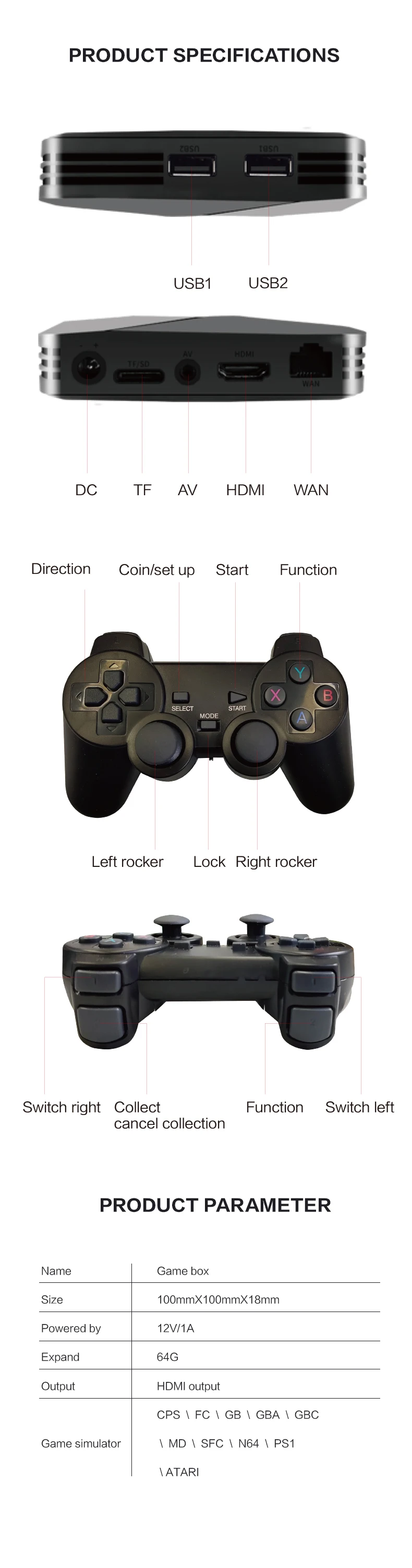 Умная ТВ-приставка IWOHL G5 на Android, Игровая приставка 4K HD, наклейка с беспроводным джойстиком, контроллером, 32 ГБ, 6800 + игр