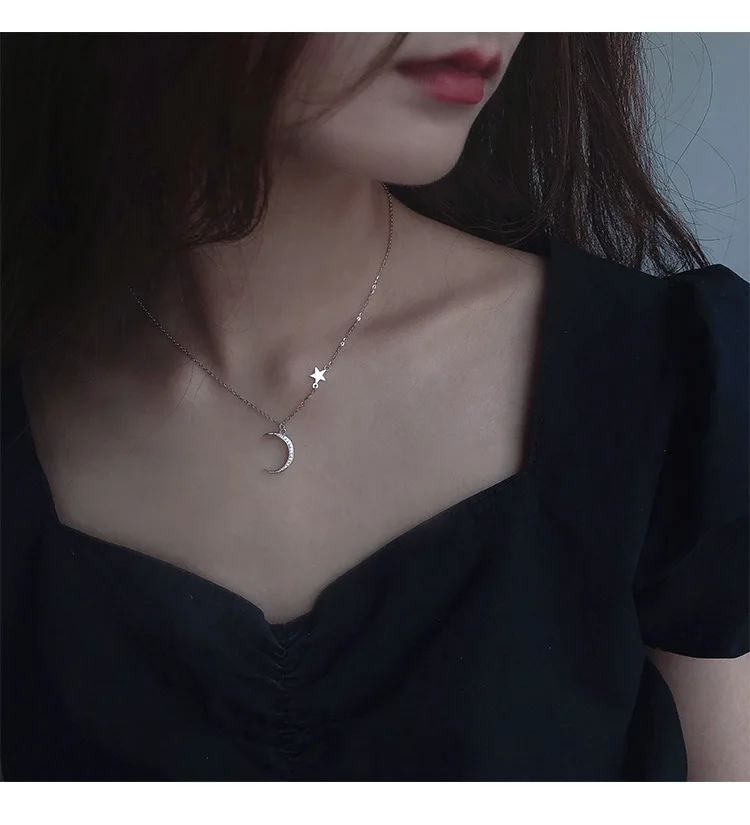 Ливи серебро Цвет микро инкрустация, блестящее циркониевое ожерелье из циркона квадратной цепочка для женщин луна ожерелье с кулоном в виде звезды свадебное ювелирное изделие, подарок