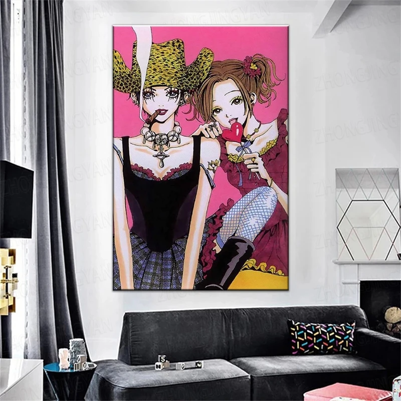 Художественные настенные плакаты с рисунком из черной искусственной кожи в стиле аниме Нана для гостиной и спальни