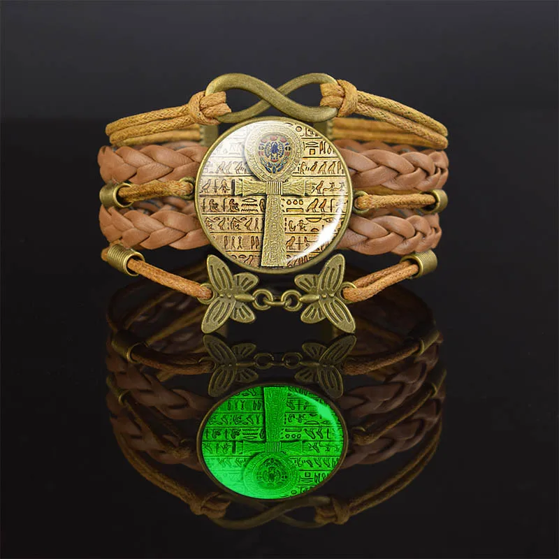 Браслет ручной работы из древнего египетского стекла, браслет на ногу со светящимся куполом, веревочные браслеты для женщин, подарок, Египет, крест, анубис, Scarab, богиня Исиды