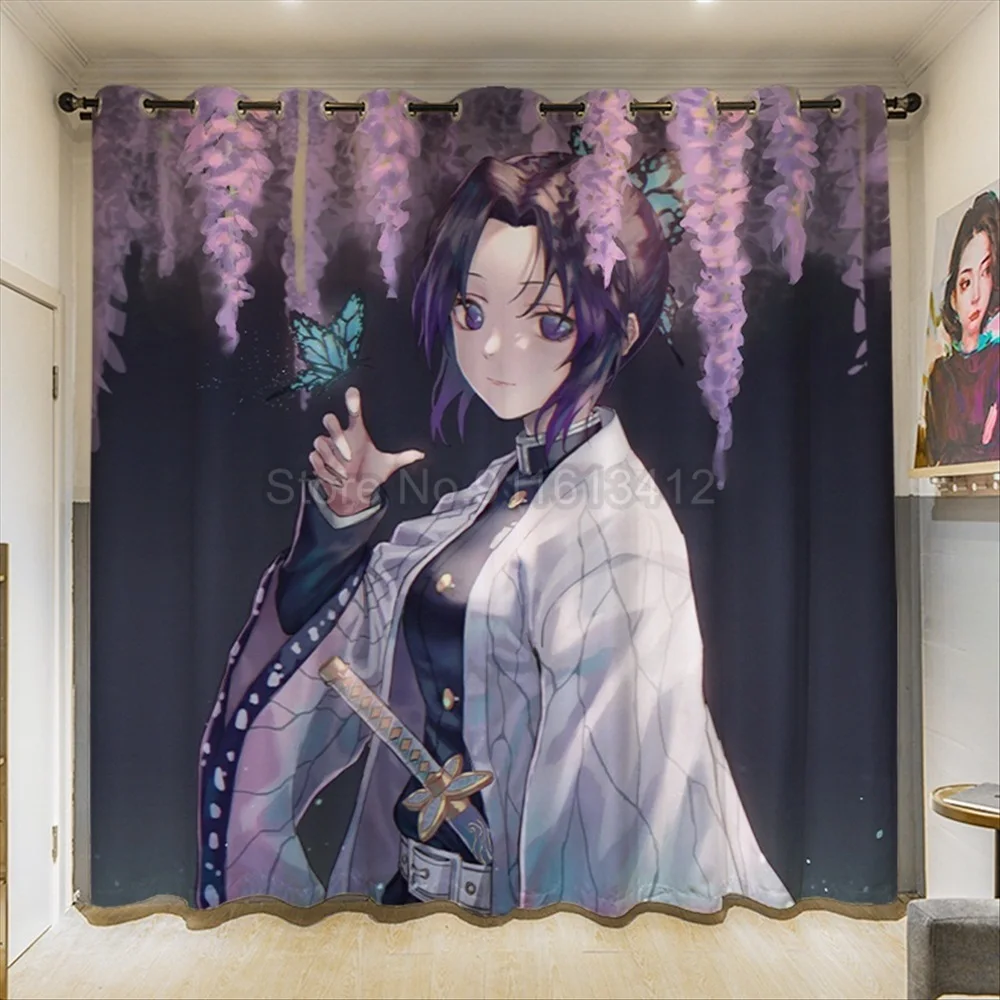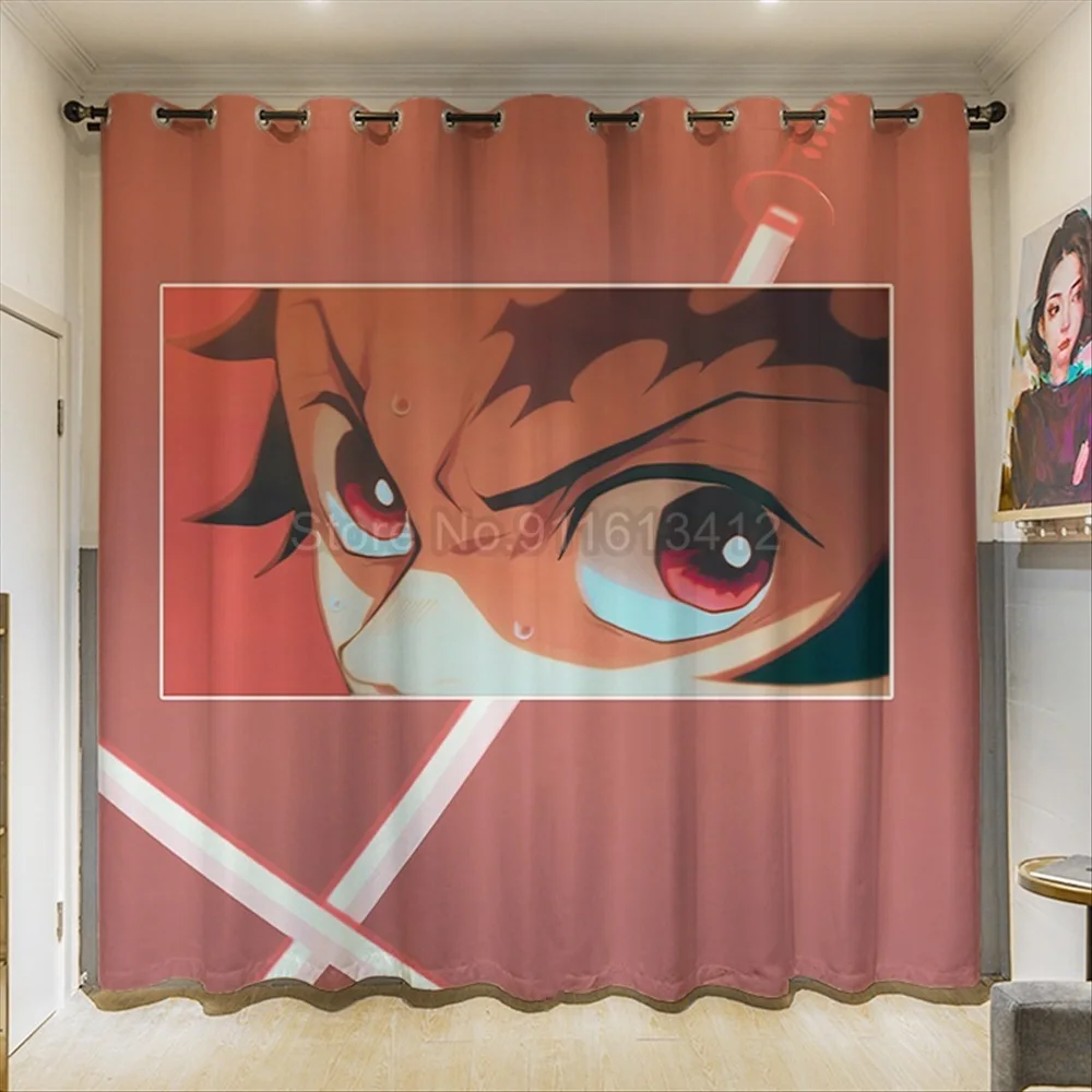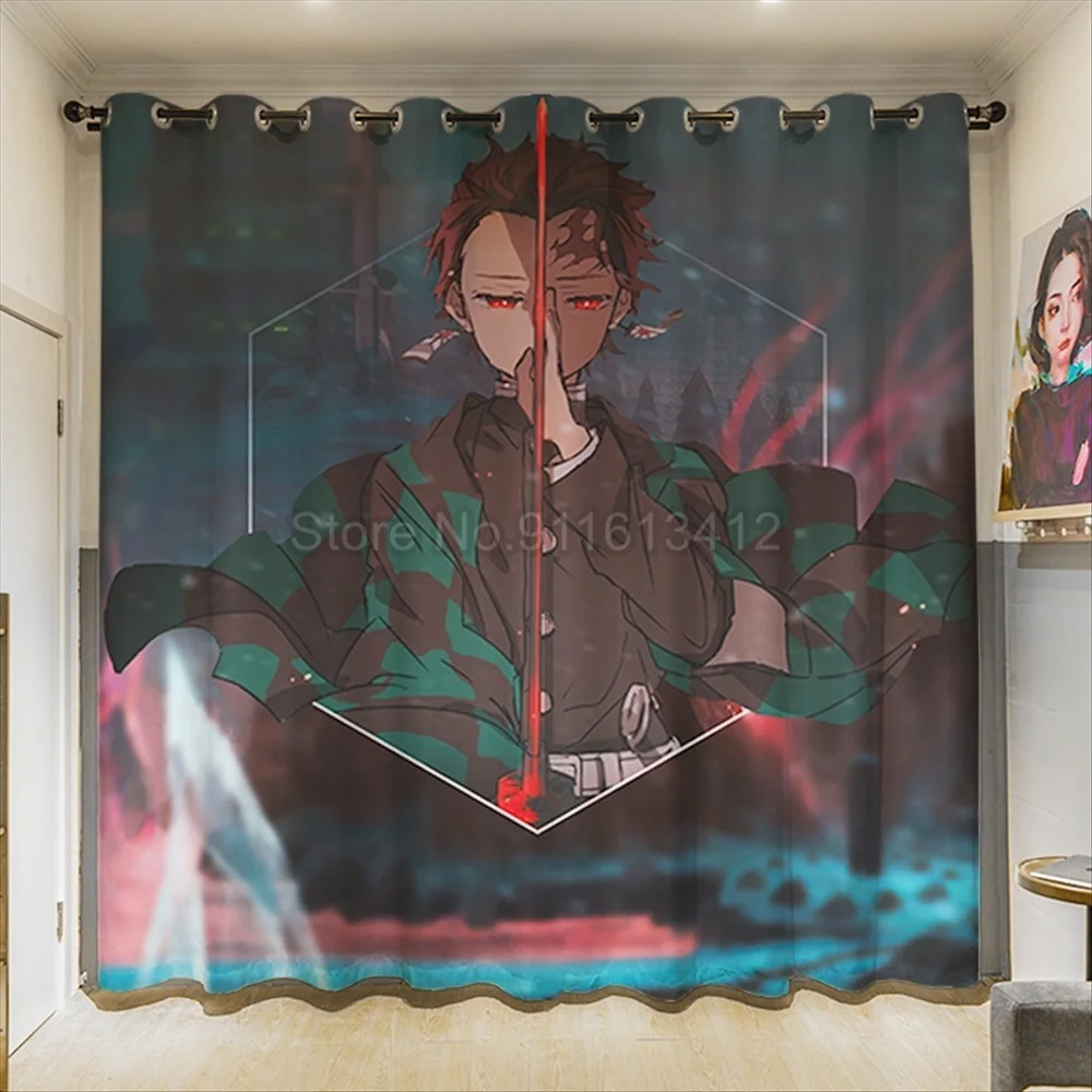 Занавески для окон в стиле аниме Demon Slayer, шторы для спальни, гостиной, японского мультфильма манга, W110xH85 дюймов, занавески на заказ
