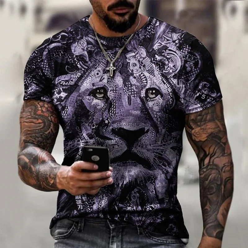 2021 летние мужские 3D Футболка с принтом ожесточенного рубашка со львом круглый вырез горловины для активного отдыха и развлечений экстра большие футболки 110-6XL