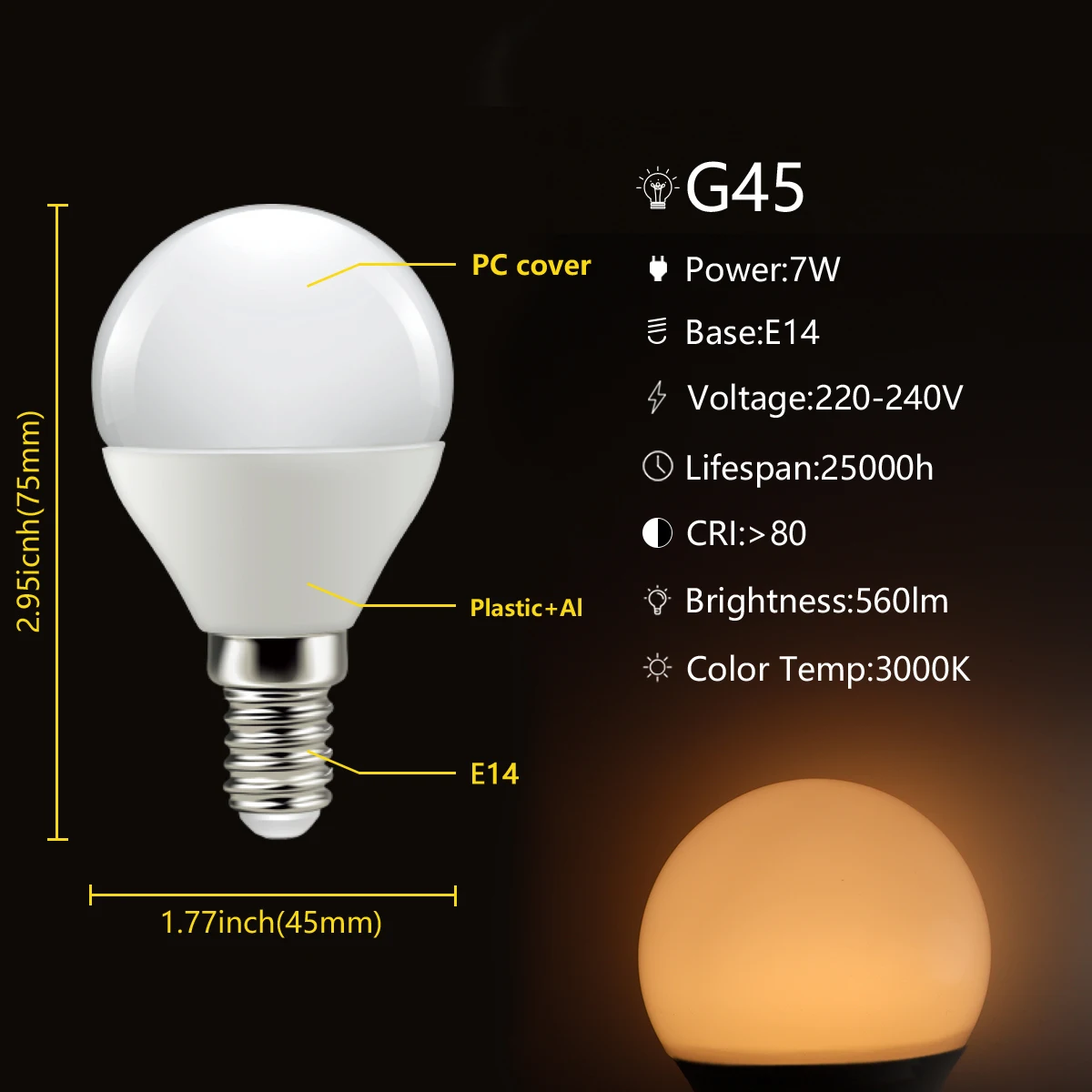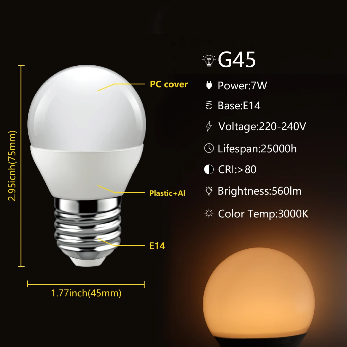 Светодиодная лампа для украшения дома и офиса G45 E27, 5 Вт, 2021-220 В