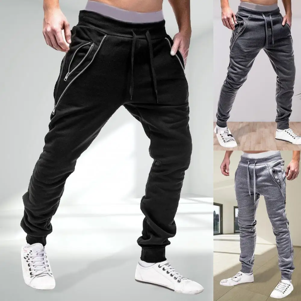 80% Горячая Для мужчин шнурок карманы на молнии ботильоны с перекрестной шнуровкой впитывает пот и Штаны спортивные брюки узкие Штаны