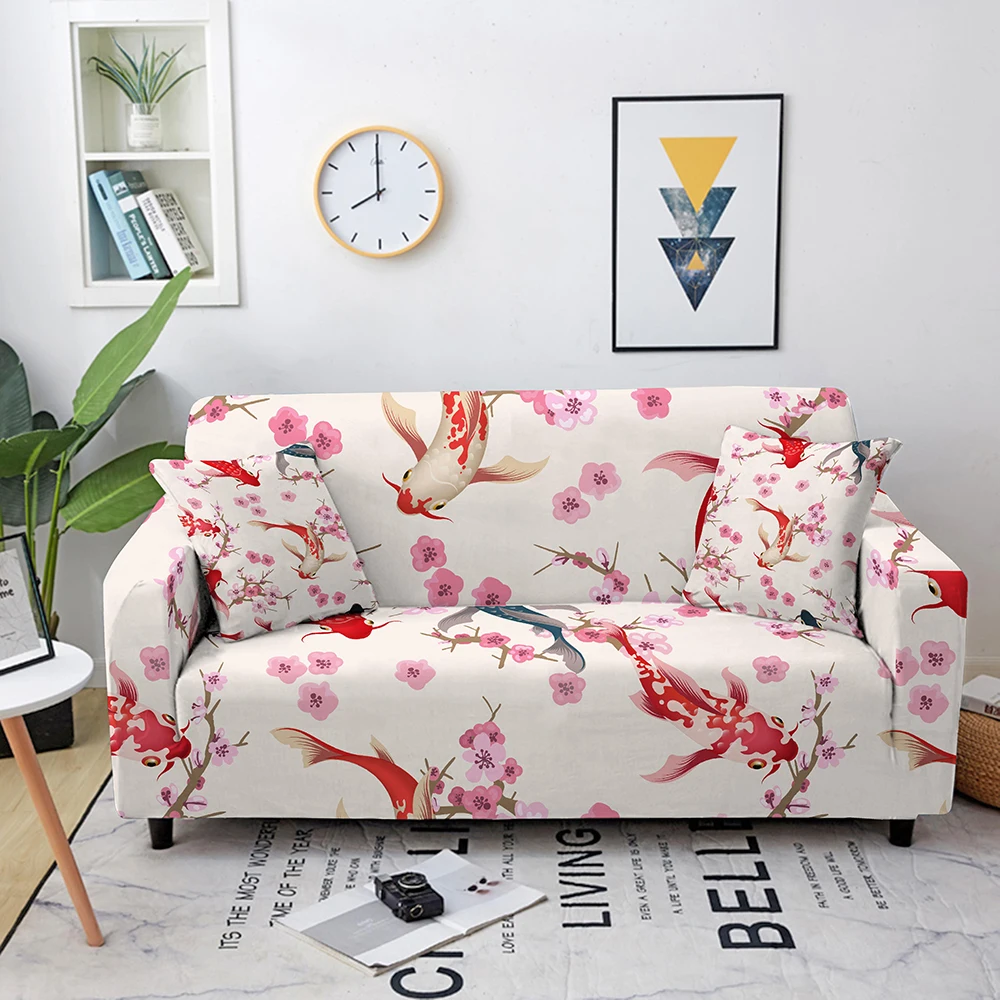 Чехол для дивана с узором карпа, эластичный чехол для дивана в гостиной, чехол для дивана, полотенце, Чехол для стула, дивана L-образной формы