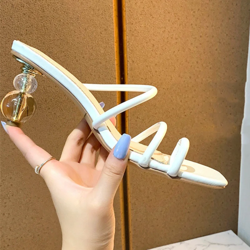 2021 г. Новые летние босоножки на среднем каблуке с одним ремешком ...