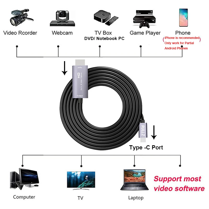 4K HD 1080P HDMI-Совместимость с картой видеозахвата типа C видео в режиме реального времени