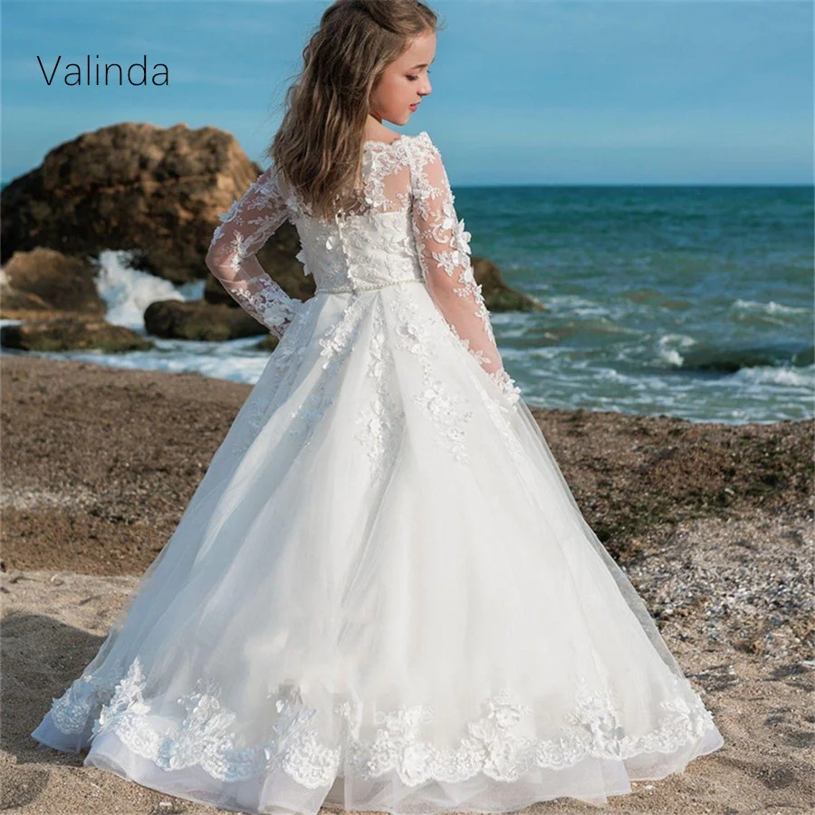 Многоярусные платья с цветами для девочек, свадебные плиссированные...