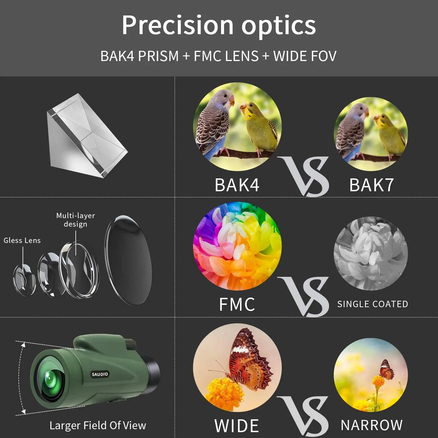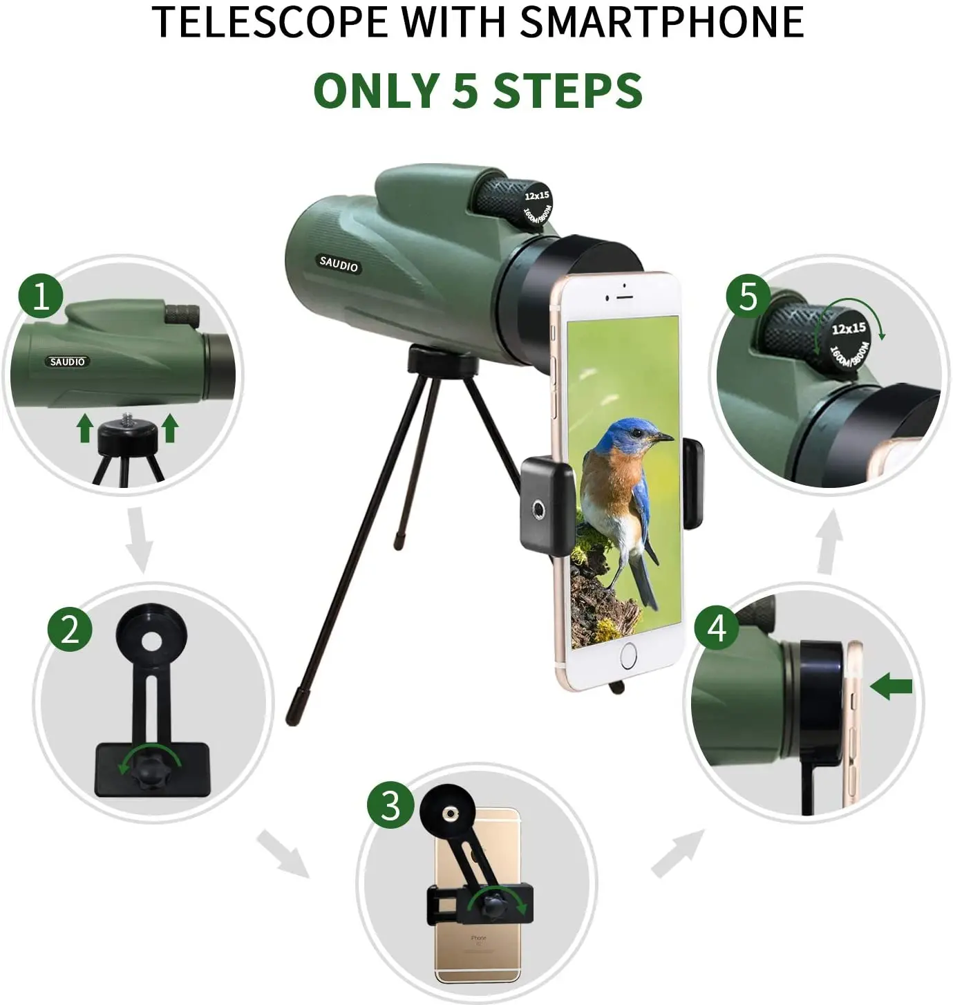 Монокулярный телескоп 12X50 HD с быстрым держателем смартфона, водонепроницаемый Монокуляр дневного и низкого видения, Монокуляр для взрослых и детей