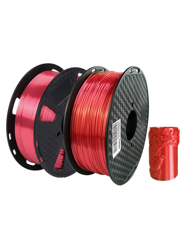 Красная шелковая нить для 3D-принтера PLA 1,75 мм 250 г 500 г 1 кг нить шелковистая сияющая 3D Ручка печатные материалы Блестящая гладкая нитьВес нетто: 1 кг/500 г/250 гМатериал: плаДиаметр нити: 1,75 ммТемпература печати: 190-210 °CСкорость печати: 30 ~ 60 мм/секция.Пустая скорость: 40 ~ 80 мм/секция.Подогреваемая кровать: не требуется, но может использоваться (до 60 °C)Очень гладкие и блестящие.Уникальное прикосновение.