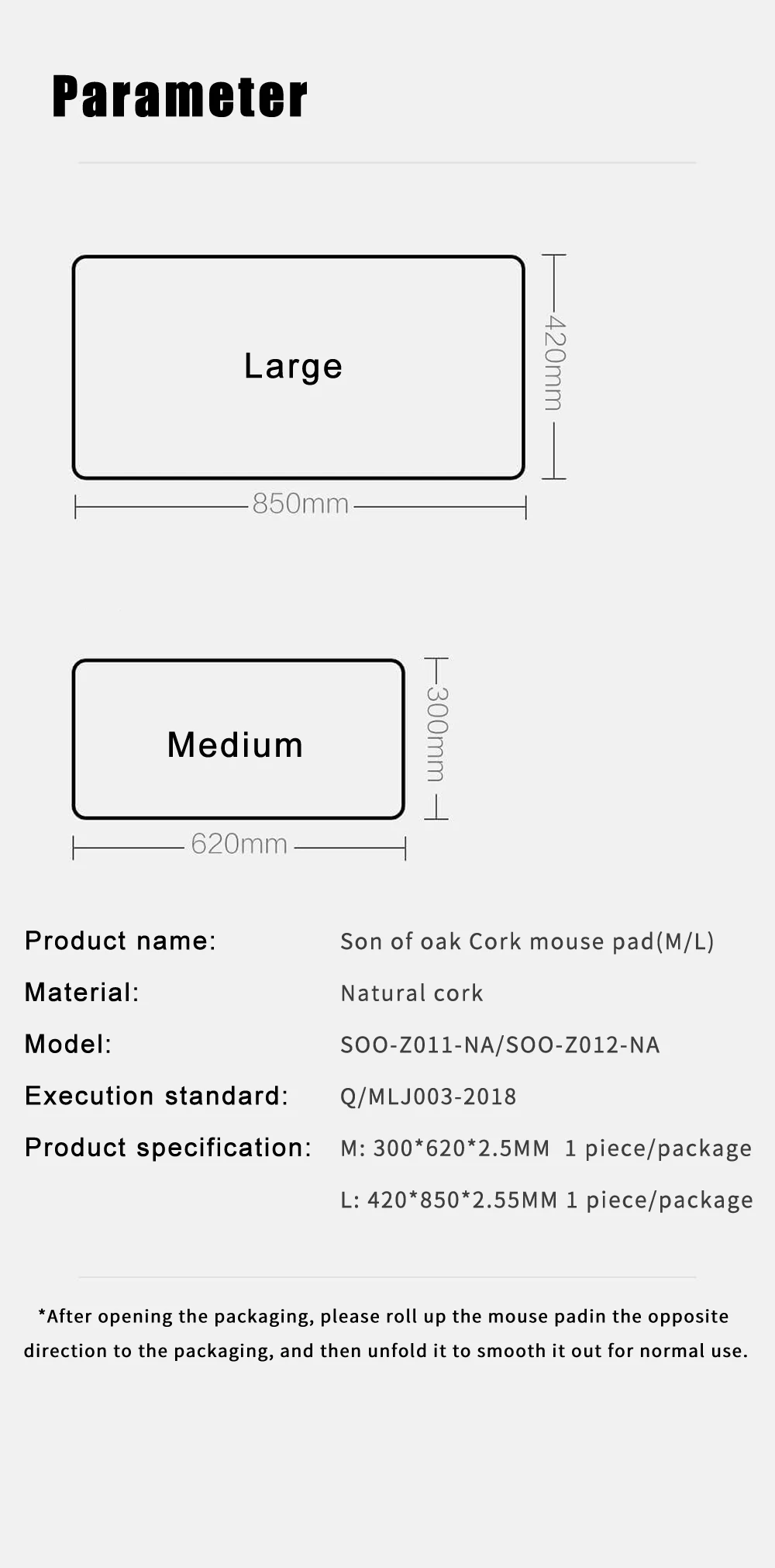 Название продукта: коврик для мыши из дуба (м/л)Материал: натуральная пробкаМодель: Soo-Z011-NA/SO0-Z012-NAСтандарт исполнения: Q/MLJ003-2018Спецификация продукта:M: 300*620*2,5 мм 1 шт./упаковкаL: 420*850*2,55 мм 1 шт./упаковка