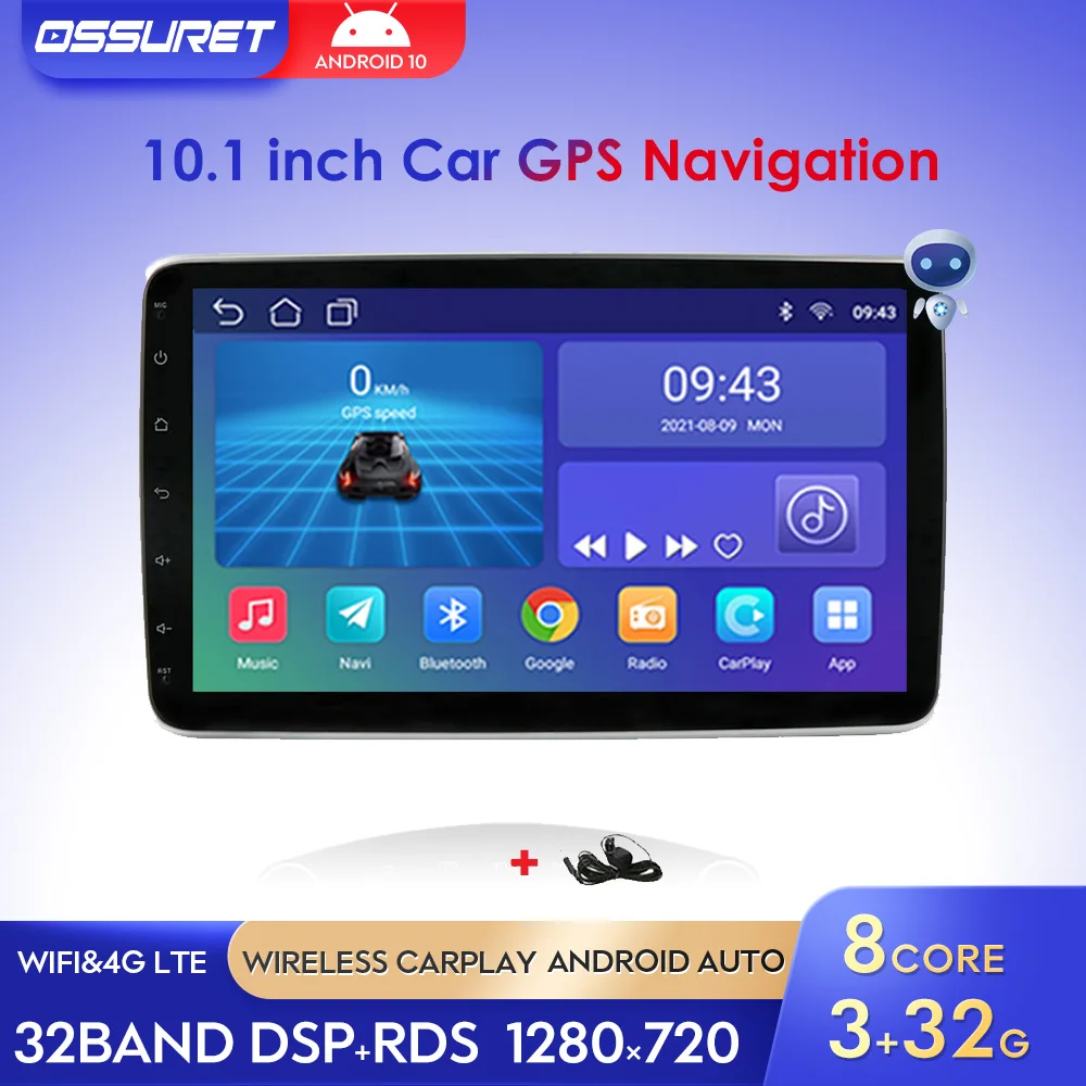 Автомагнитола на Android 10, мультимедийный проигрыватель с поворотом на 10,1 градусов, GPS, BT-навигатор, 1DIN, 1 ГБ, 2 Гб ОЗУ, 16 ГБ, 32 Гб ПЗУ, стерео