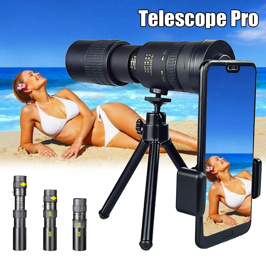 Монокулярный телескоп с супертелефото зумом 4K 10-300x40 мм, линза с призмой BAK4 для пляжа, путешествий, активного отдыха, спорта