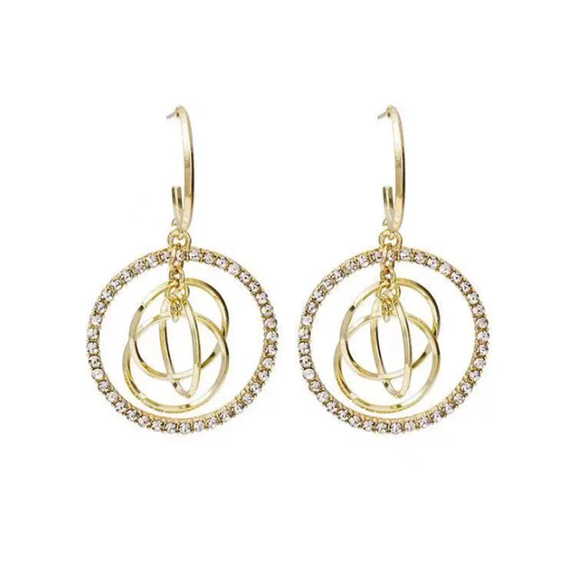 Корейские новые модные серьги-кольца Стразы Блестящие кристаллы полый золотой цвет круглая серьга круга для женщин Свадебные украшения подарок