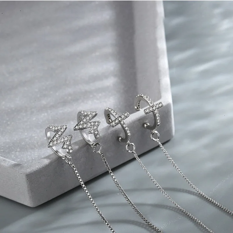 Женские Новые темпераментные серьги Стразы с электрокардиограммой, серьги-клипсы с длинной цепочкой, элегантные серьги для пирсинга в Корейском стиле, ювелирные изделия