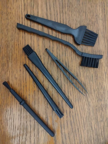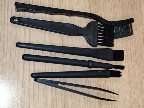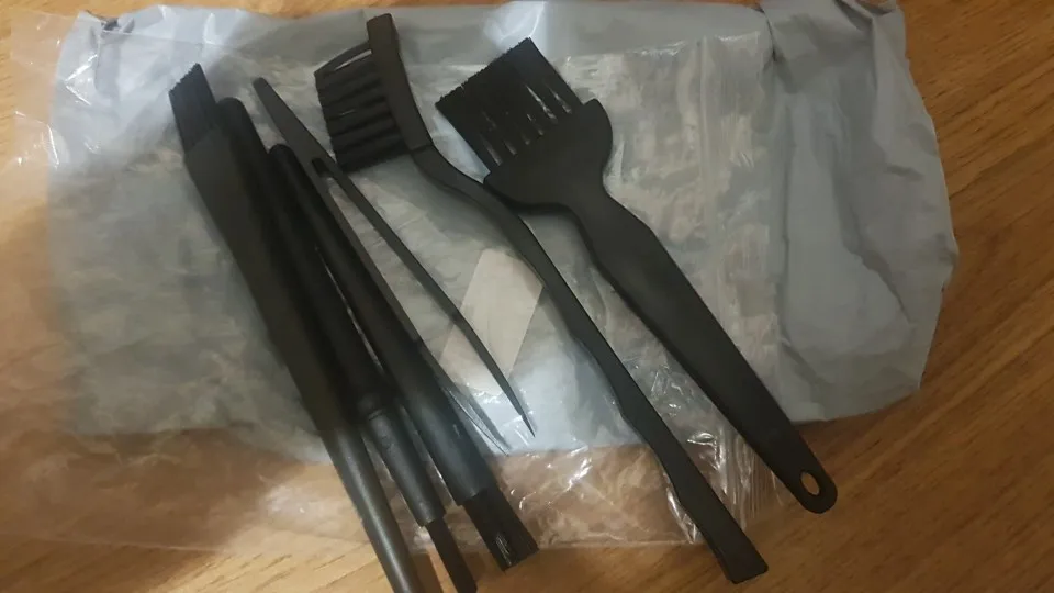 Щёточки довольно жёсткие, сгибаются не очень хорошо. Думаю что ими прочищать можно разве что то, что не боишься поцарапать