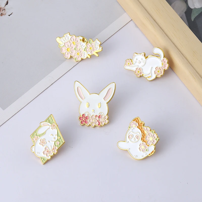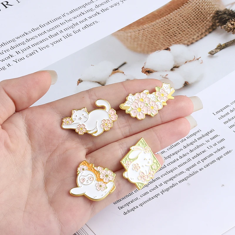 Эмалированная брошь в виде кошки, кролика, сакуры, котенка, кролика, Ленивец, цветок, Ainmal значки, ювелирные изделия, оптовая продажа, подарок для детей