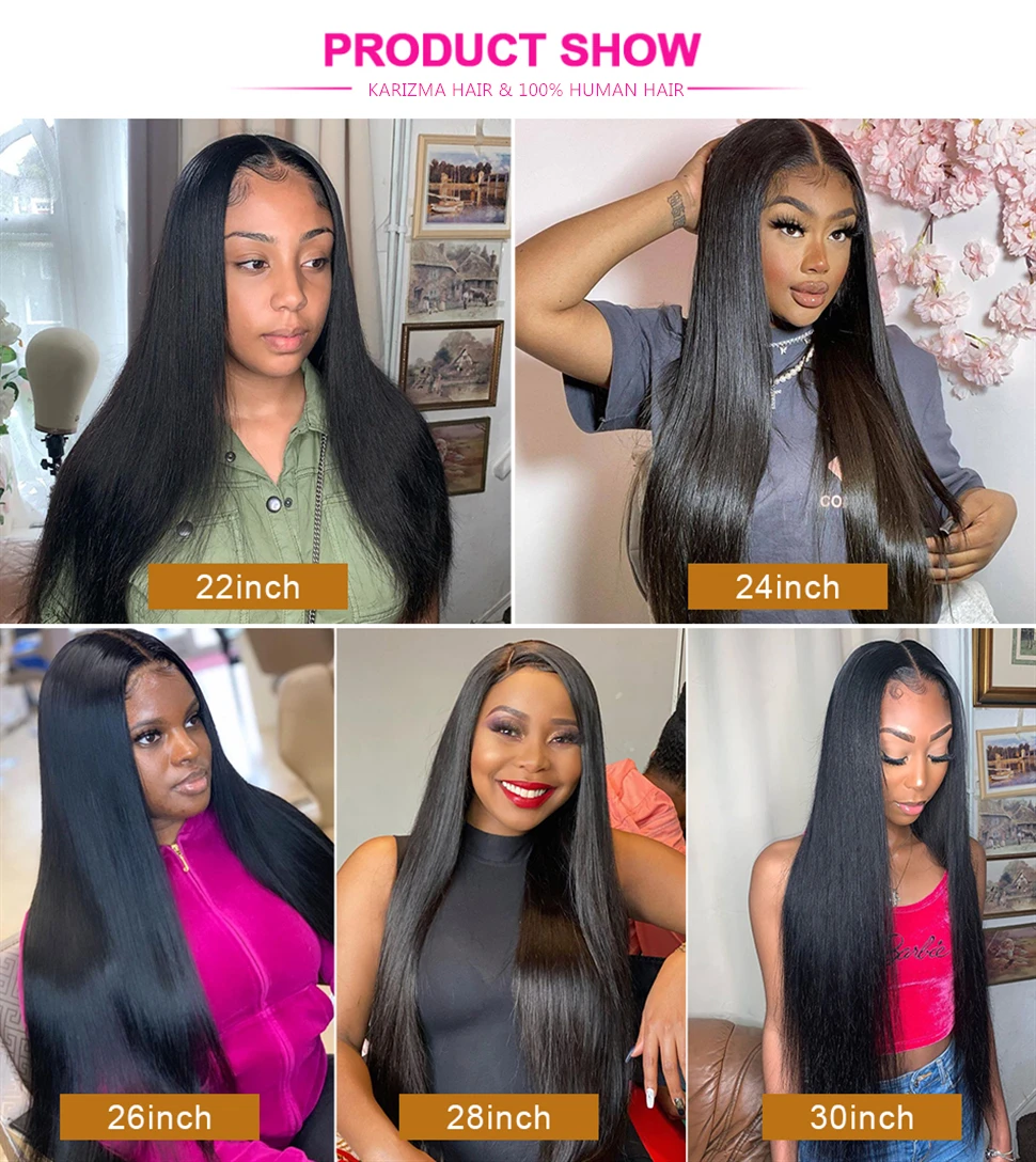Парики из натуральных волос с прямыми волосами, 32 дюйма, 13 х6 дюймов