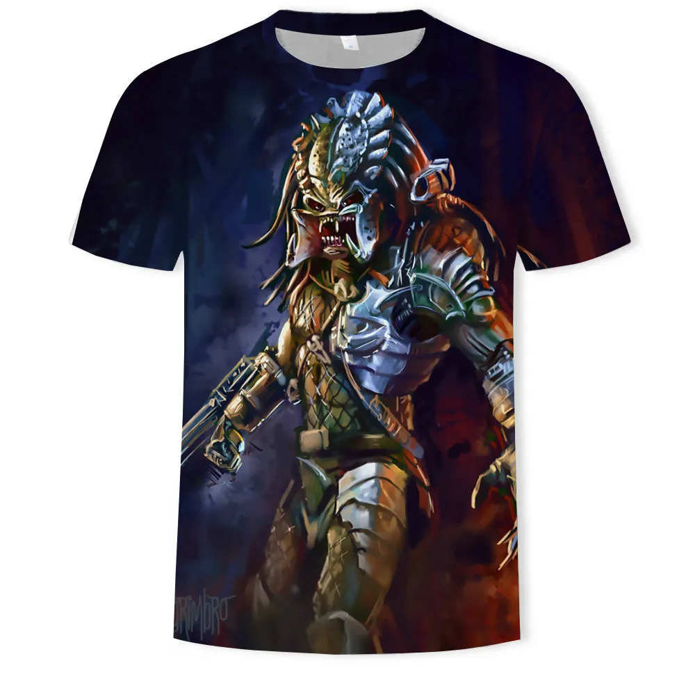 Мужская футболка с изысканным 3D принтом, летняя дышащая футболка с короткими рукавами, научный триллер, серия хищников
