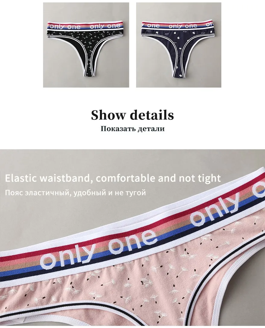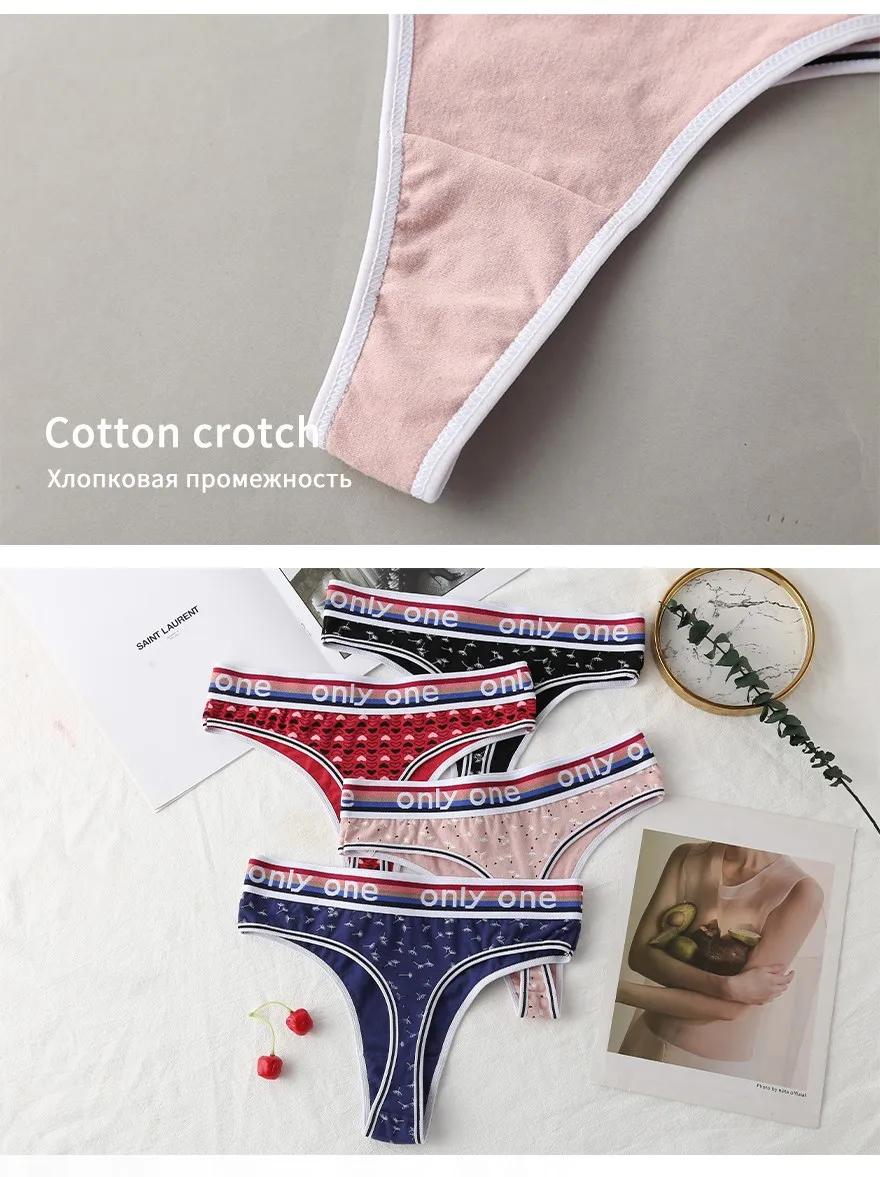 3 шт., однотонные женские трусики с цветочным орнаментом