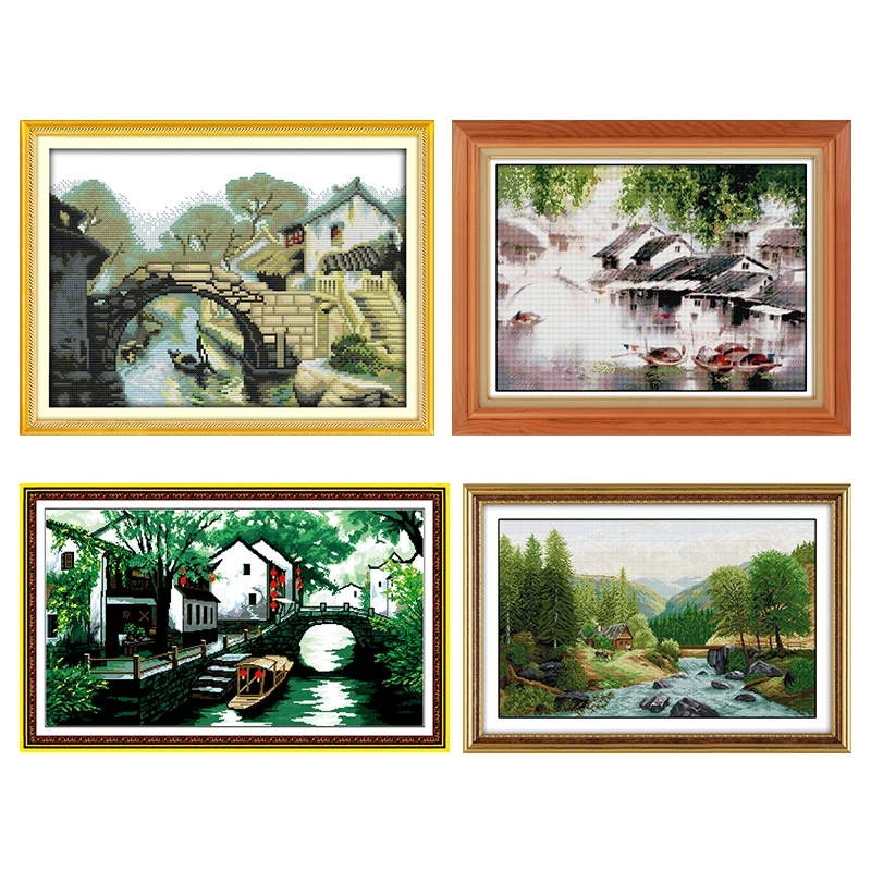 Наборы для вышивки крестиком, с принтом на пружине, до берега озера...