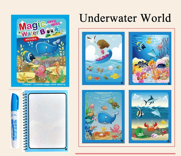 Раскраска-книжка Монтессори, 1 набор, рисование волшебной ручки, доска для рисования, детские игрушки, 5 шт., игрушки для плавания, подарок на день рождения WYW