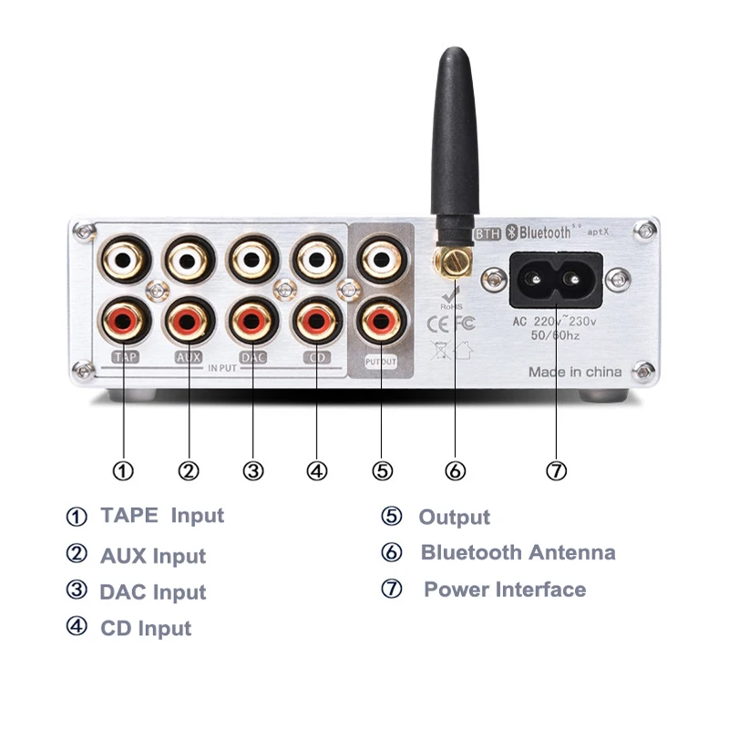 Входной интерфейс: 4 канала RCA вход + Bluetooth вход