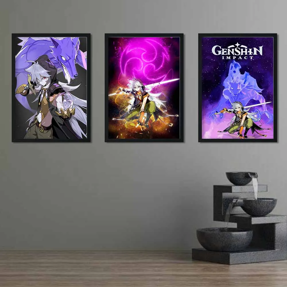 Винтажный постер Genshin Impact, картина по мотивам игры бритвы, аниме, настенные художественные принты, украшение для дома, бара, комнаты, Настенный декор, Холщовый постер