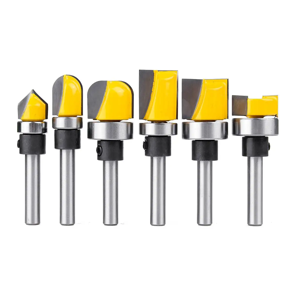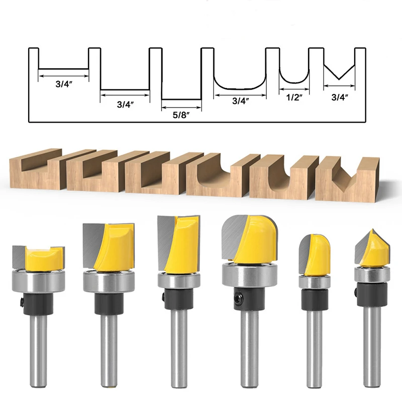 Спецификация:Диаметр хвостовика: 1/4 дюймаМатериал лезвия: сталь 45 #Цвет: серебристый и желтый6 видов на выбор: прямой 1/4 "x3/4" x5/16 ", прямой 1/4" x3/4 "x5/8", прямой 1/4 "x5/8" x13/16 ", круглый нос 1/4" x3/4 ", круглый нос 1/4" x1/2 ", V-образный 1/4" x1/2"