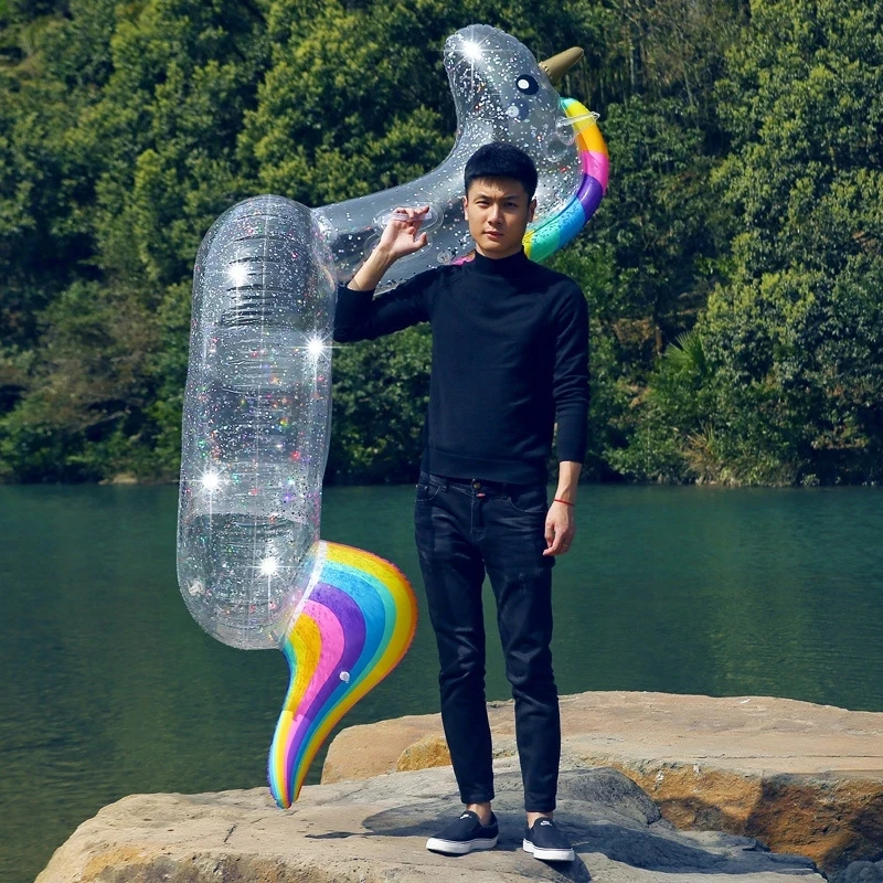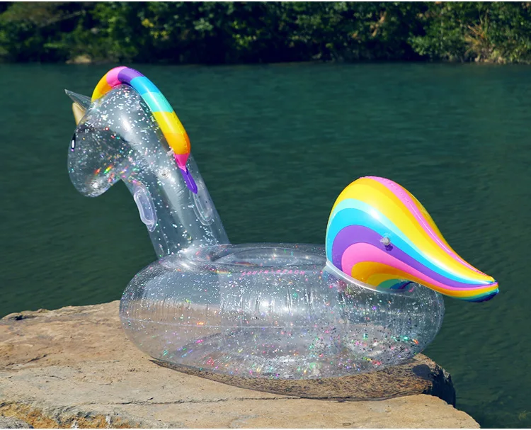 Feature 8Giant Sparkly Unicorn Inflatable Pool Float Colorful Glitter Swimming