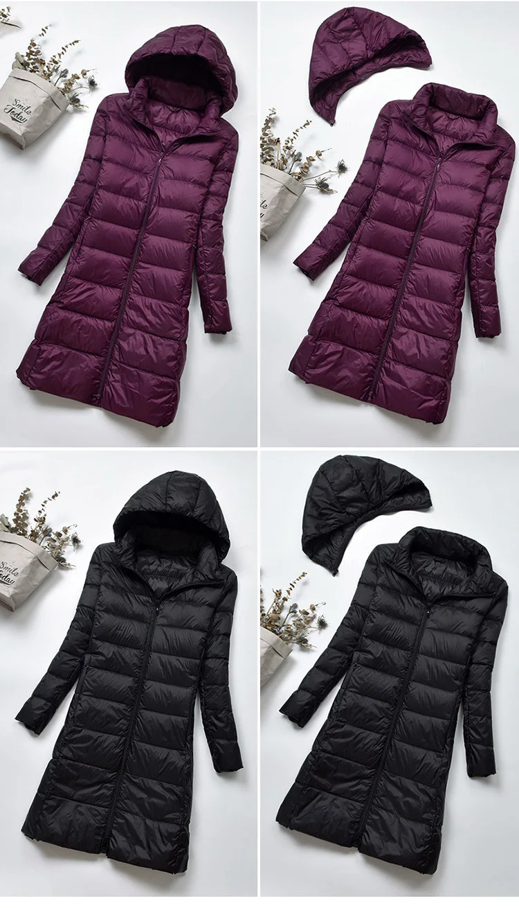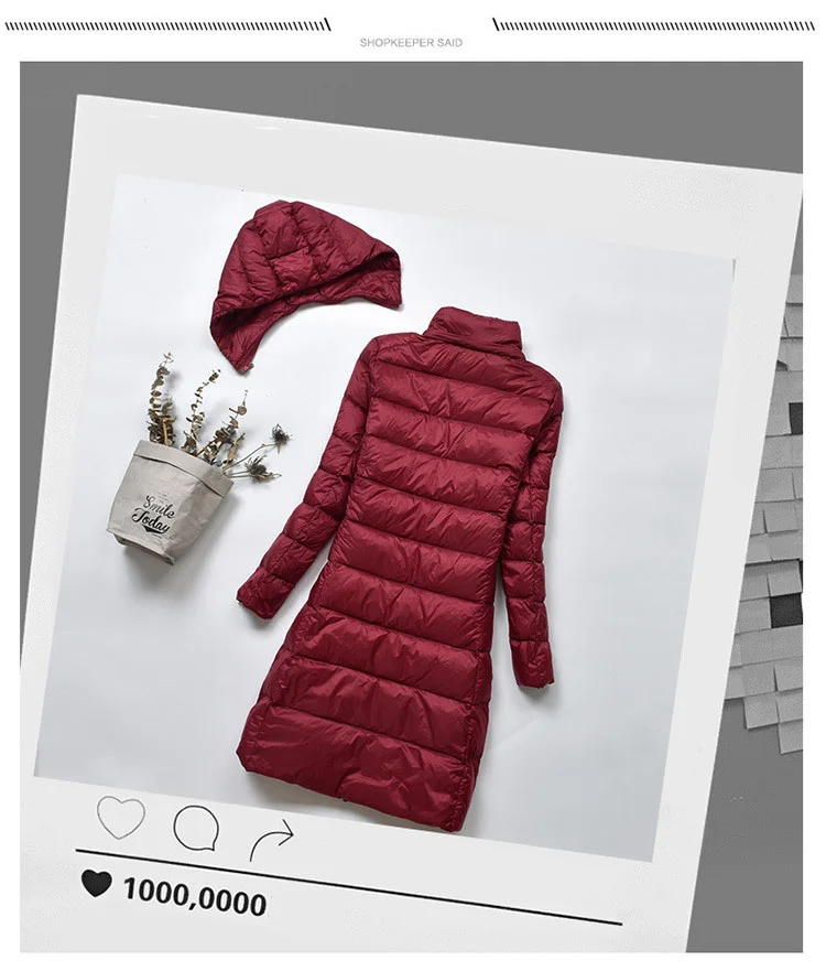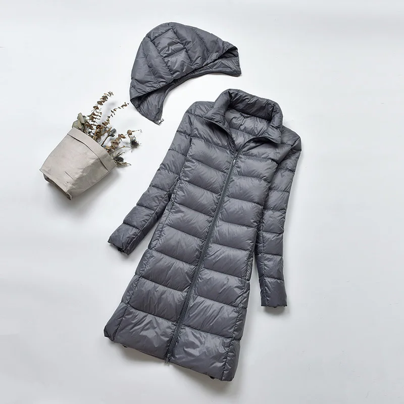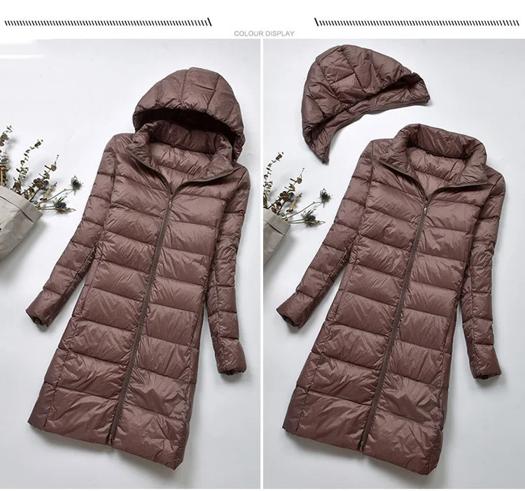 Женский ульсветильник тонкий пуховик, Осень-зима 100%, тонкое теплое пальто с капюшоном на белом утином пуху, женская верхняя одежда