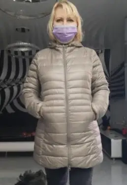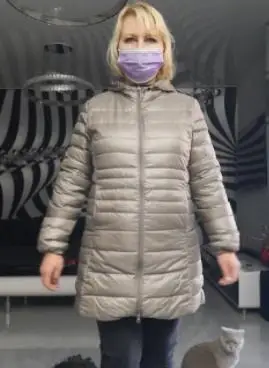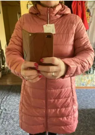 курточка очень хорошая. супер легкая. доставка быстрая.размер тоже подошел. но можго было взять на размер поменьше. заказала XXL. мои параметры 94. 80. 100. на фото я одела под куртку теплую кофту. снижаю оценку за брак на куртке. шов не прострочен. цвет лиловый а не серый. на фото лиловая кошка. она такого же цвета как куртка