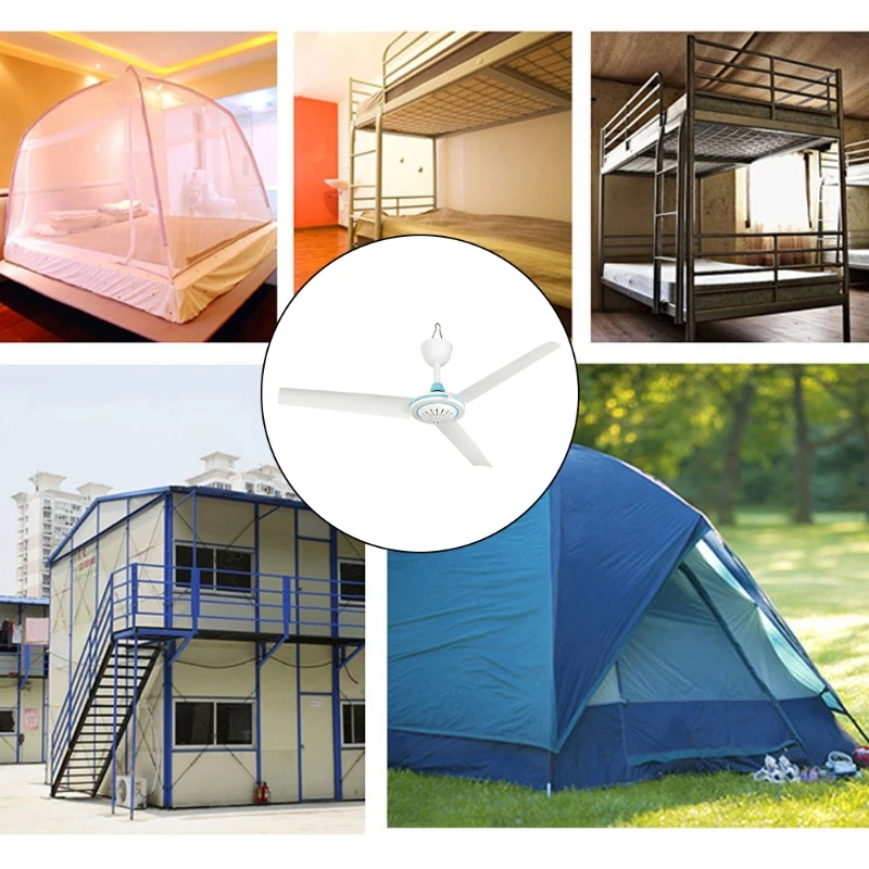 Небольшой потолочный вентилятор отлично подходит для жаркого лета и безветренного дня, а также для спальни гостиной столовой автомобиля внедорожника или кемпинга на открытом воздухе палатки.