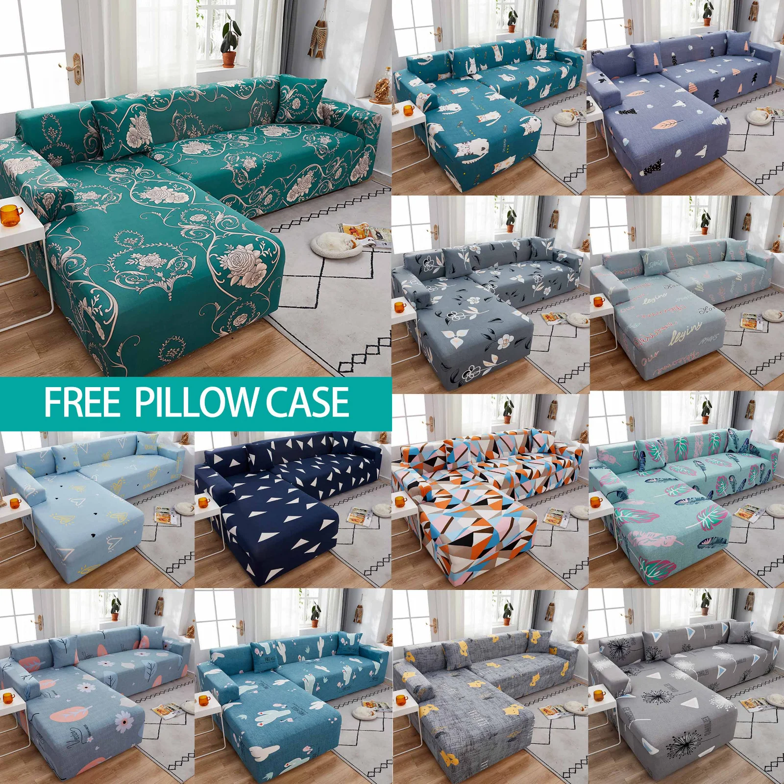 Чехол для 1234 дивана, эластичный, Г-образный, с принтом, регулируемый, съемный, с бесплатной наволочкой