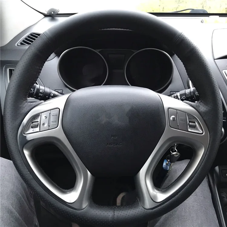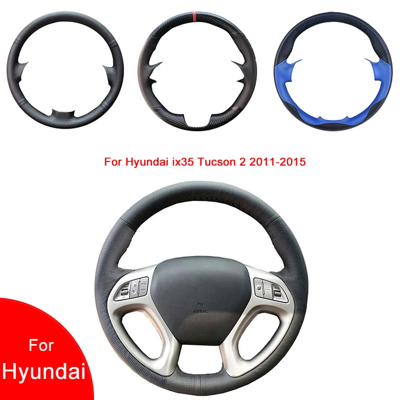 Дышащая прошитая вручную черная искусственная кожа Чехол рулевого колеса автомобиля для Hyundai ix35, Tucson 2 2011-2015