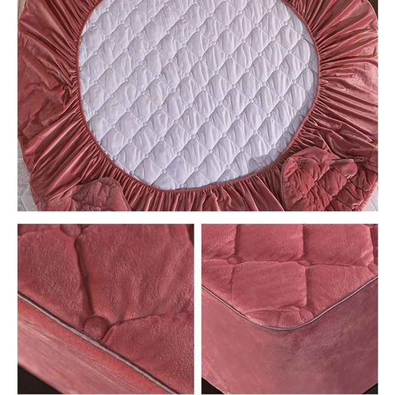 Плюшевый утолщенный стеганый наматрасник, теплая мягкая кристальная бархатная двуспальная стеганая простыня без наволочки