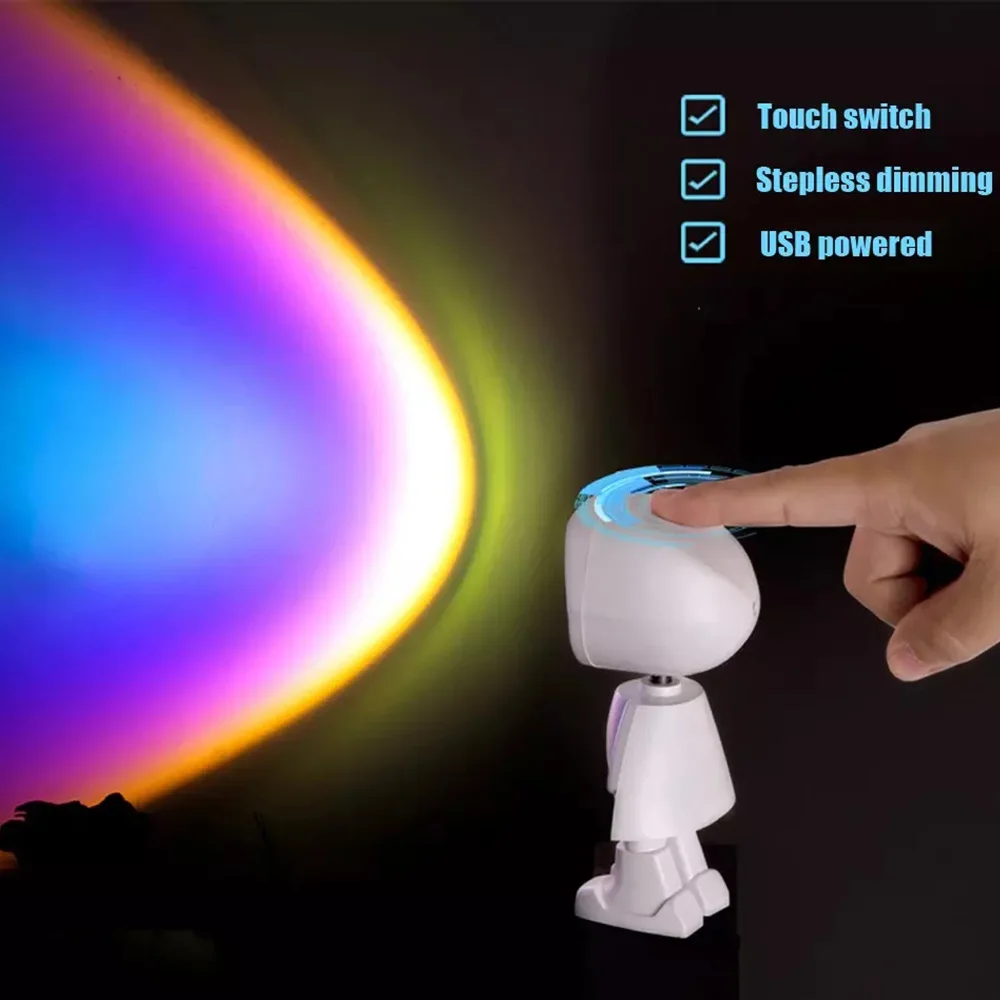 Новая мультяшная Радужная проекционная лампа, солнечный закат, робо...
