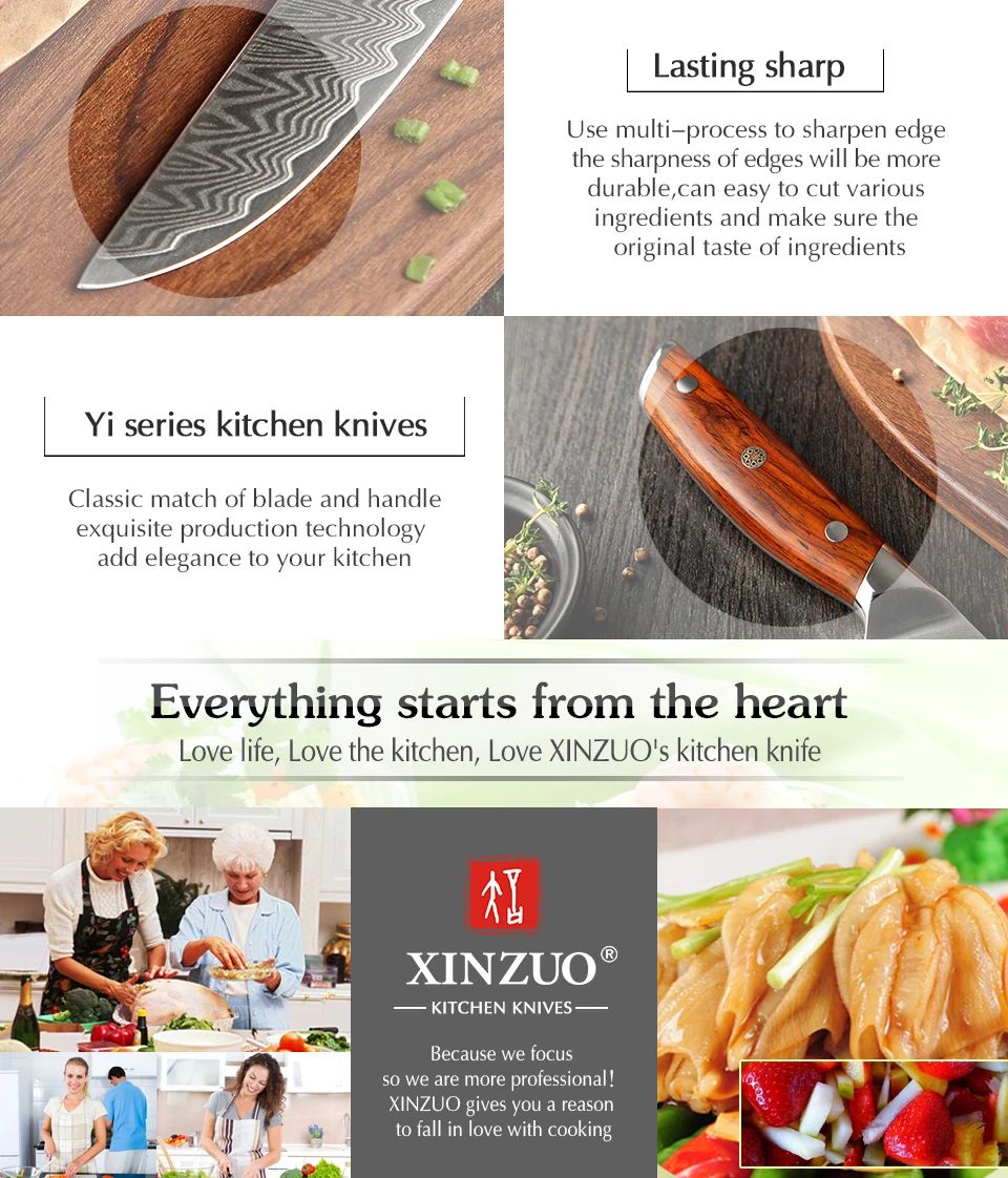 Кухонный нож XINZUO, Многофункциональный кухонный прибор из дамасск...