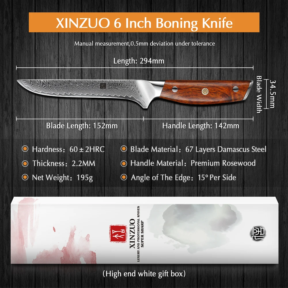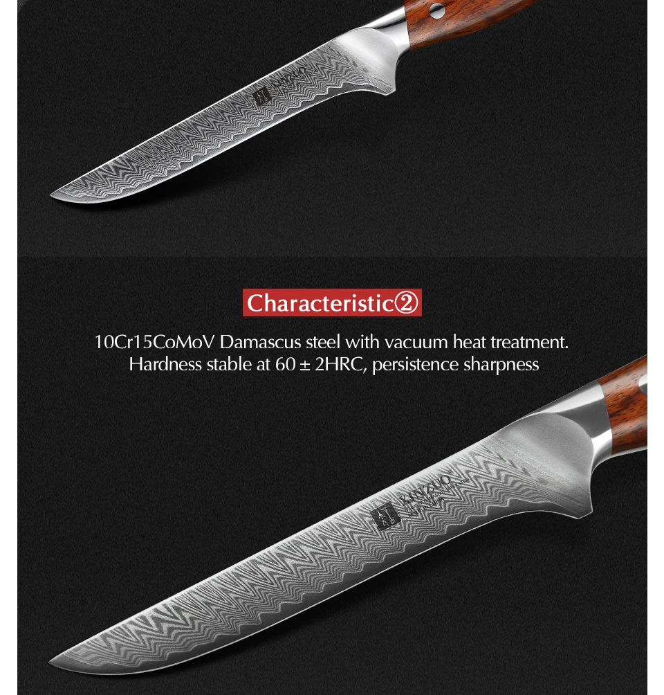 Нож для обвалки XINZUO 6 дюймов, профессиональный кухонный резец из дамасской стали, в японском стиле, для ловли рыбы с филе