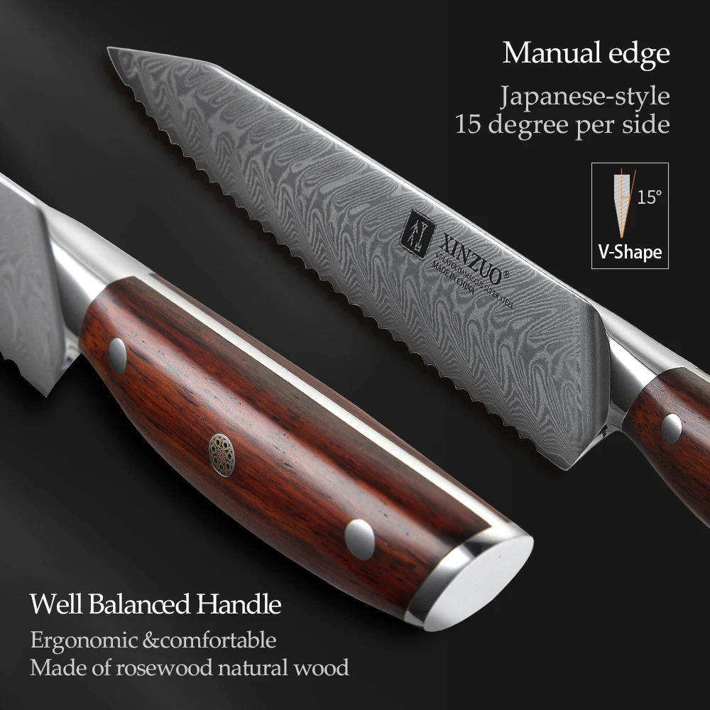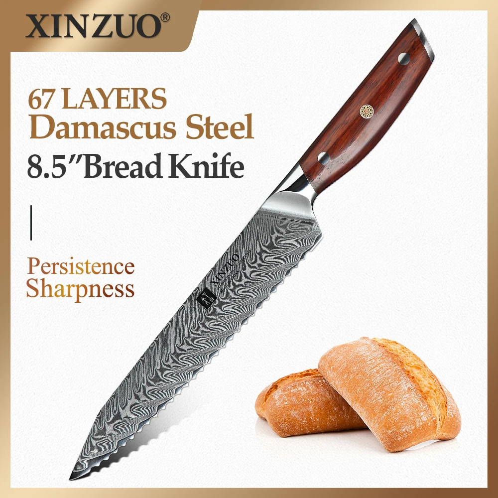XINZUO 8,5 ''хлеб Ножи высокая отключающая способность Дамаск Нержавеющаясталь лезвие с новым дизайном и хлеб торт сыр Кухня ножи палисандр ручки