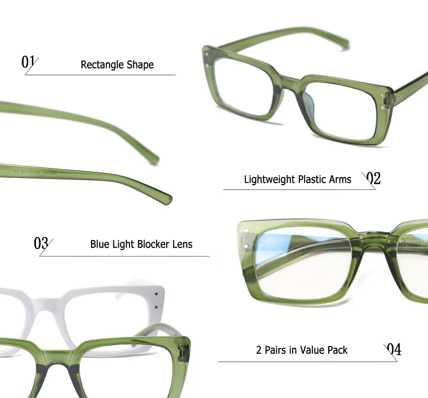 Очки для чтения женские прямоугольные, с защитой от синего света, + пресбиопические для чтения, + 0,5, 2 шт.