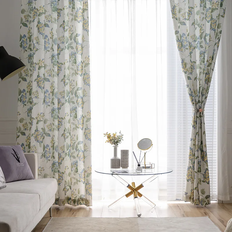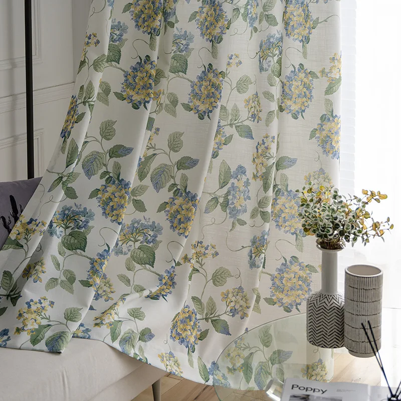 Занавески на окна в американском стиле для гостиной, занавески из хлопка и льна в стиле кантри с гортензией для спальни