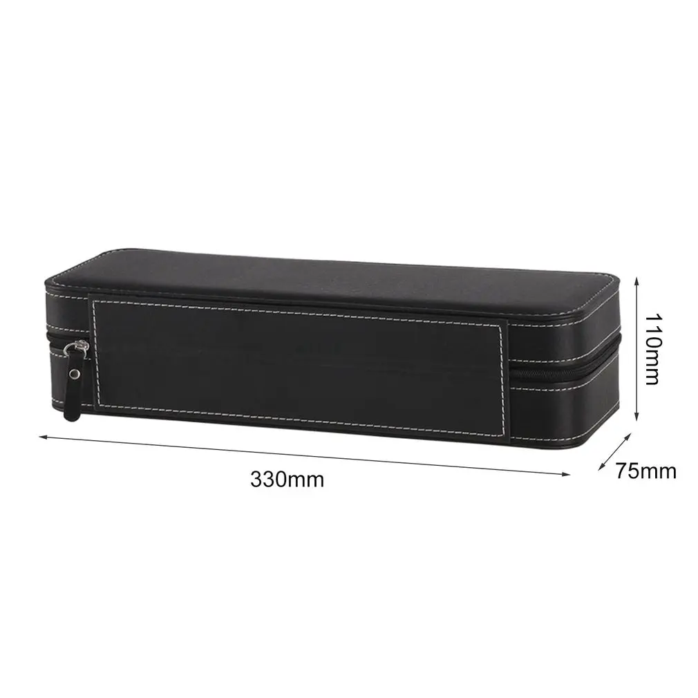 Особенности:Изготовлен из ДВП высокой плотности и покрыт мягкой ворсом, безопасен для часов.С 6 слотами, он держит ваши часы организованными.Застежка-молния легко открывается, очень удобно.Изысканный маленький размер, легко носить с собой.Идеально подходит для личного или делового использования.Описание:С использованием высококачественной синтетической искусственной кожи, она очень прочная в использовании.Простой и компактный дизайн с элегантным внешним видом и может использоваться для хранения часов.Отличный подарок для любителей коллекции часов.Характеристики:Материал: из искусственной кожиРазмер: 330*110*75 ммЦвет: черный и серыйСлот: 6 шт.Посылка включает в себя:Коробка-органайзер для часов-1 шт.Примечание:Из-за разницы между различными мониторами изображение может не отражать фактический цвет изделия. Мы гарантируем, что модель реального изделия не отличается от представленной на фото.Пожалуйста, учитывайте незначительные отклонения в измерениях, вызванные ручными измерениями, спасибо за понимание.