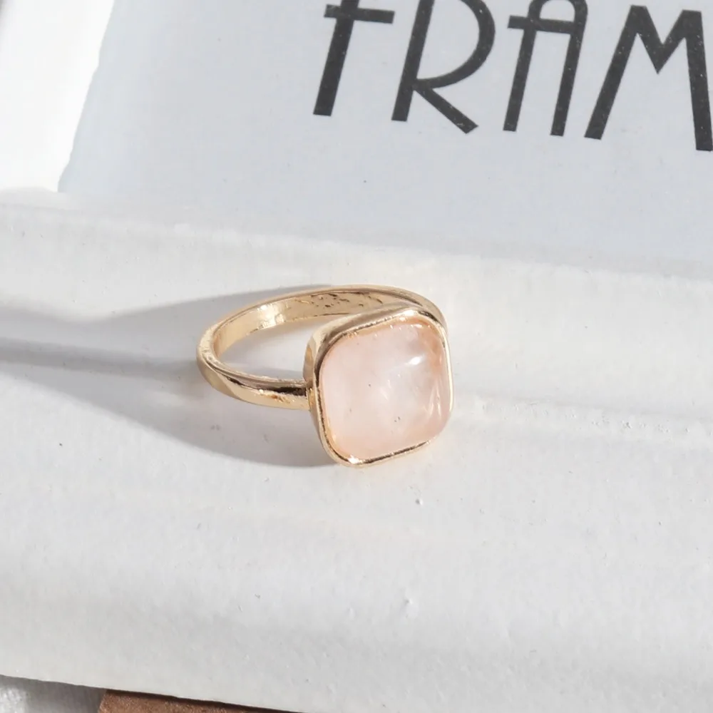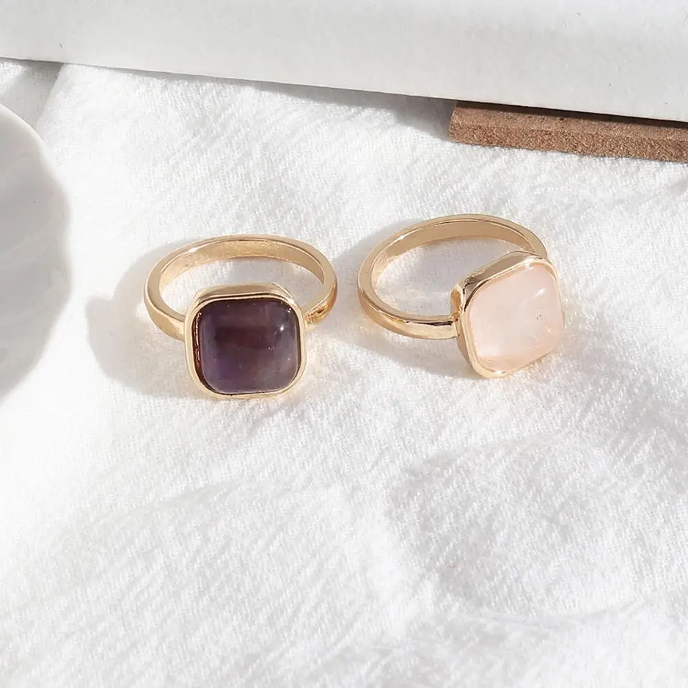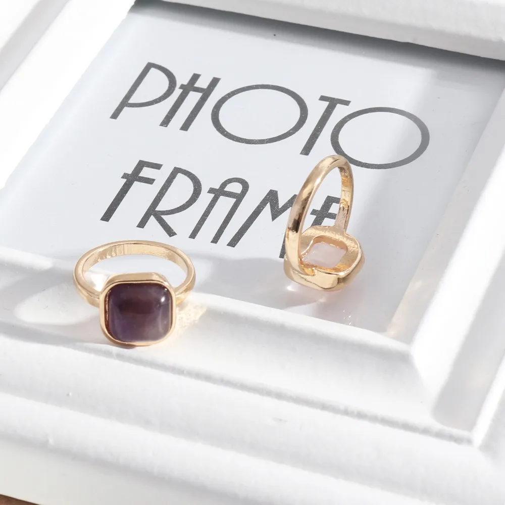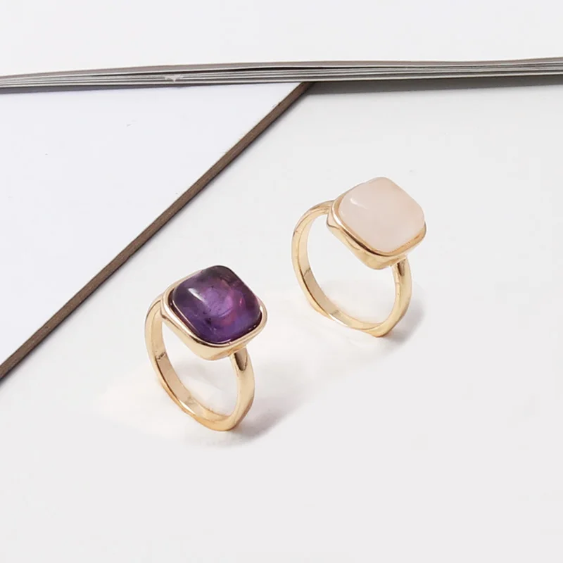 Кольцо для девочки, с квадратным натуральным камнем, инкрустированным сплавом