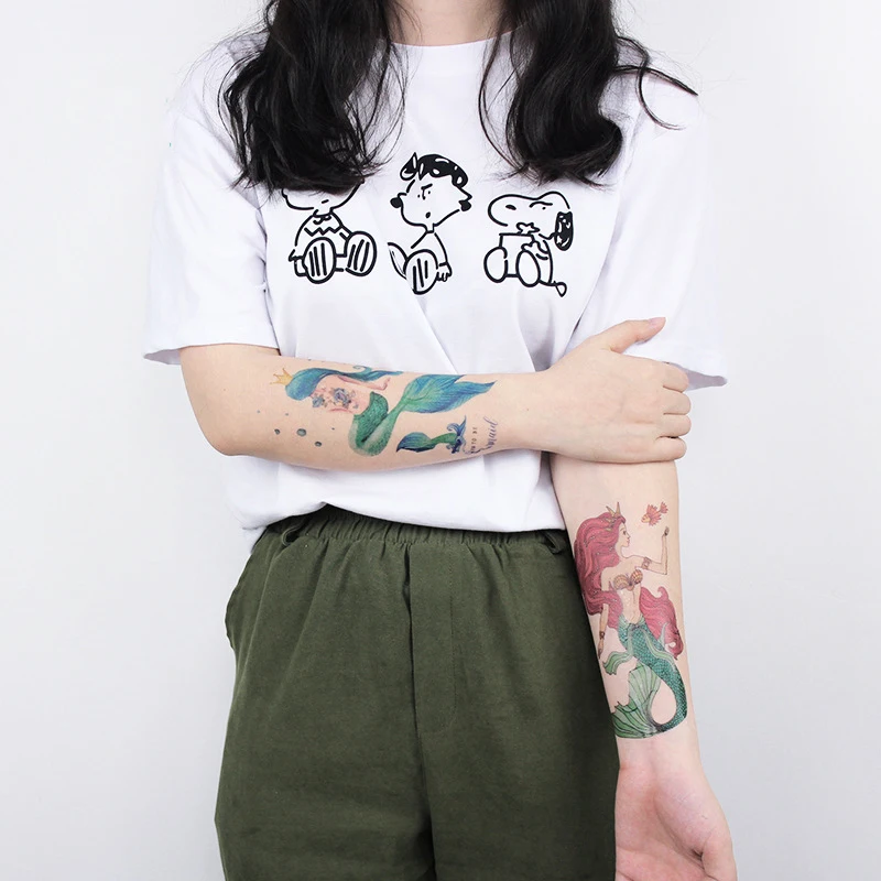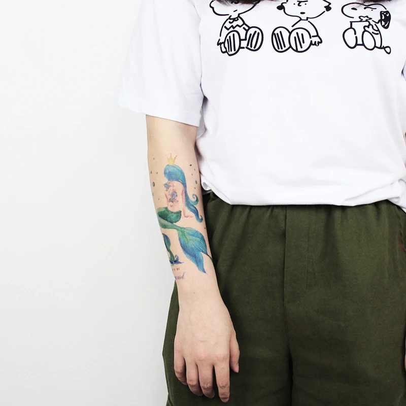 Серия "Русалка" Водонепроницаемый временные маленький цветок рука татуировки летние женские штаны сзади Модная стильная футболка с изображением персонажей видеоигр стикер татуировки оптом