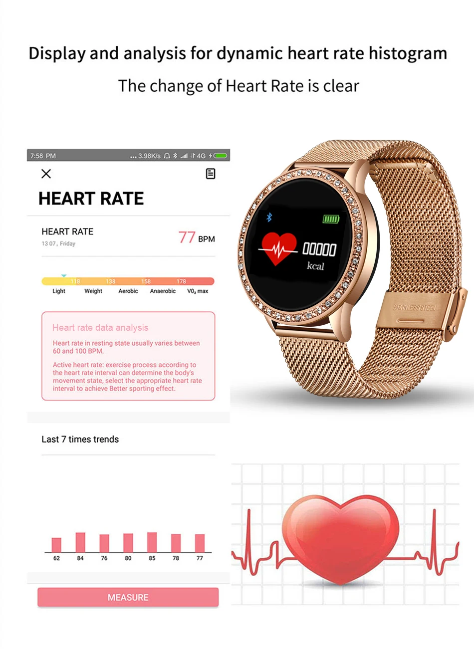 Женские Смарт-часы LIGE с монитором кровяного давления и пульса, фи...