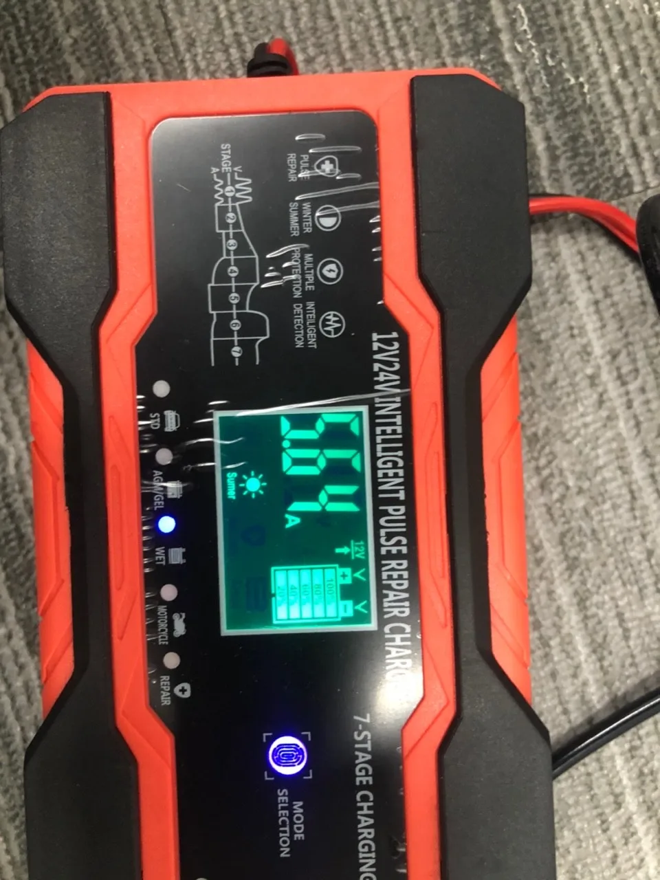 Моя батарея, 60 ач разрядилась на следующий день, я купил это зарядное устройство прибыл во Францию менее чем за 10 дней! И сразу же я подключил его в режиме ремонта. Результат: чудо, аккумулятор уже 12,6 в. Я в упаковке.