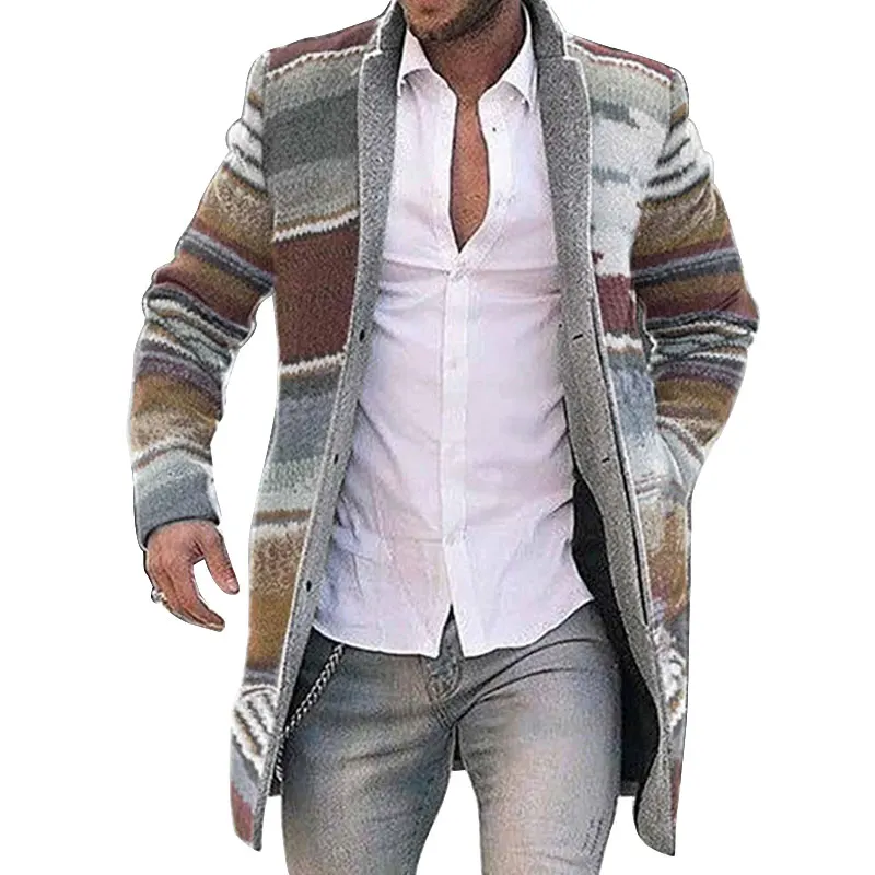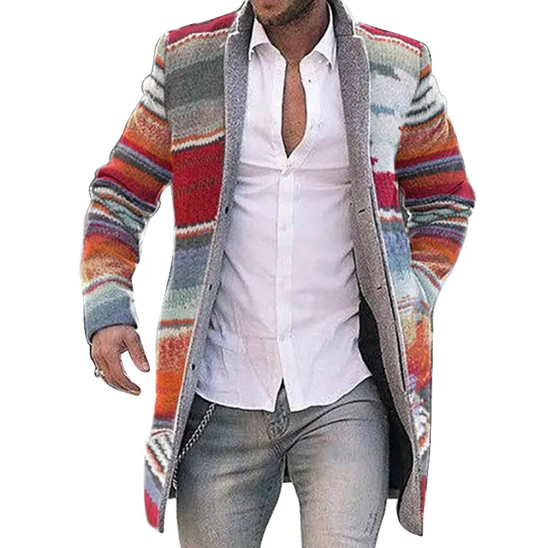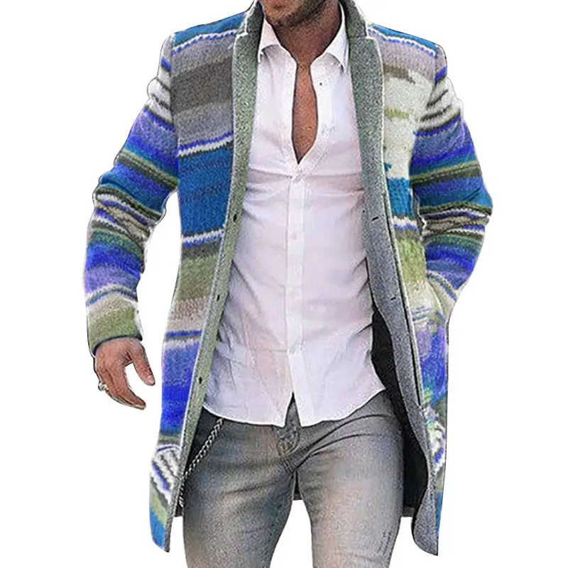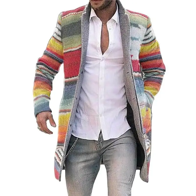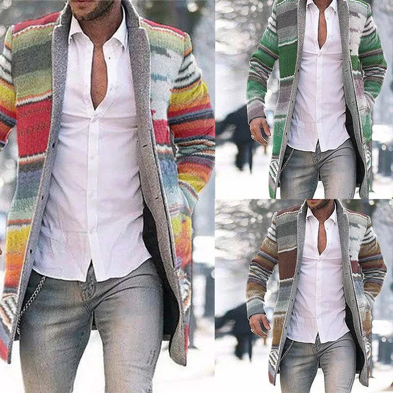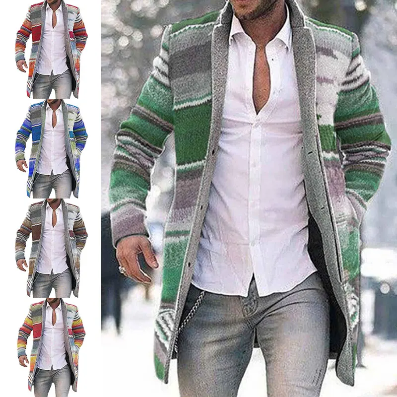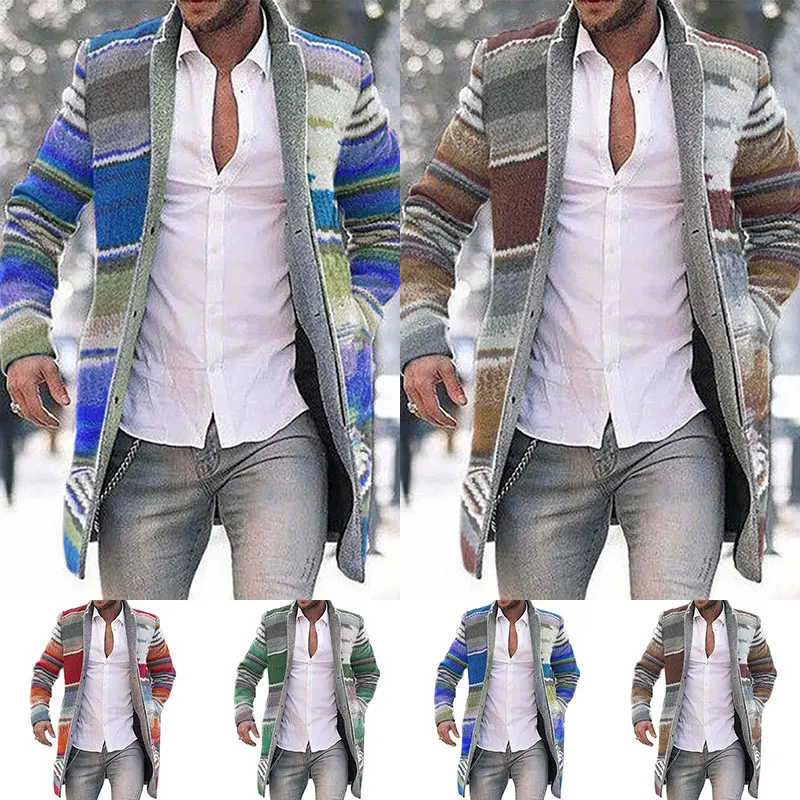 Зимние Модные мужские вязаные куртки в стиле пэчворк, плотный удобный свитер с длинным рукавом, пальто, теплый кардиган с воротником-стойкой на осень и зиму