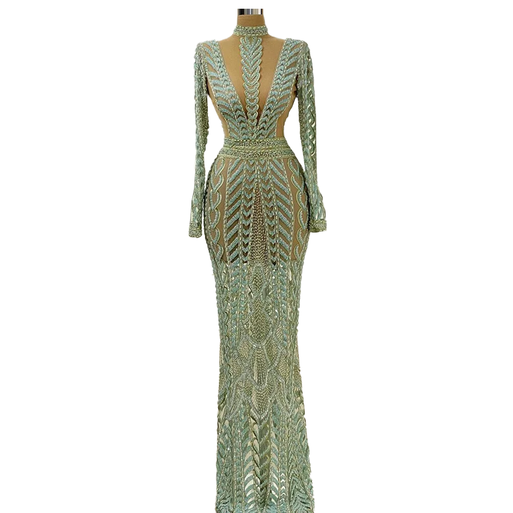 Женское вечернее платье с V-образным вырезом, длинным рукавом и бус...
